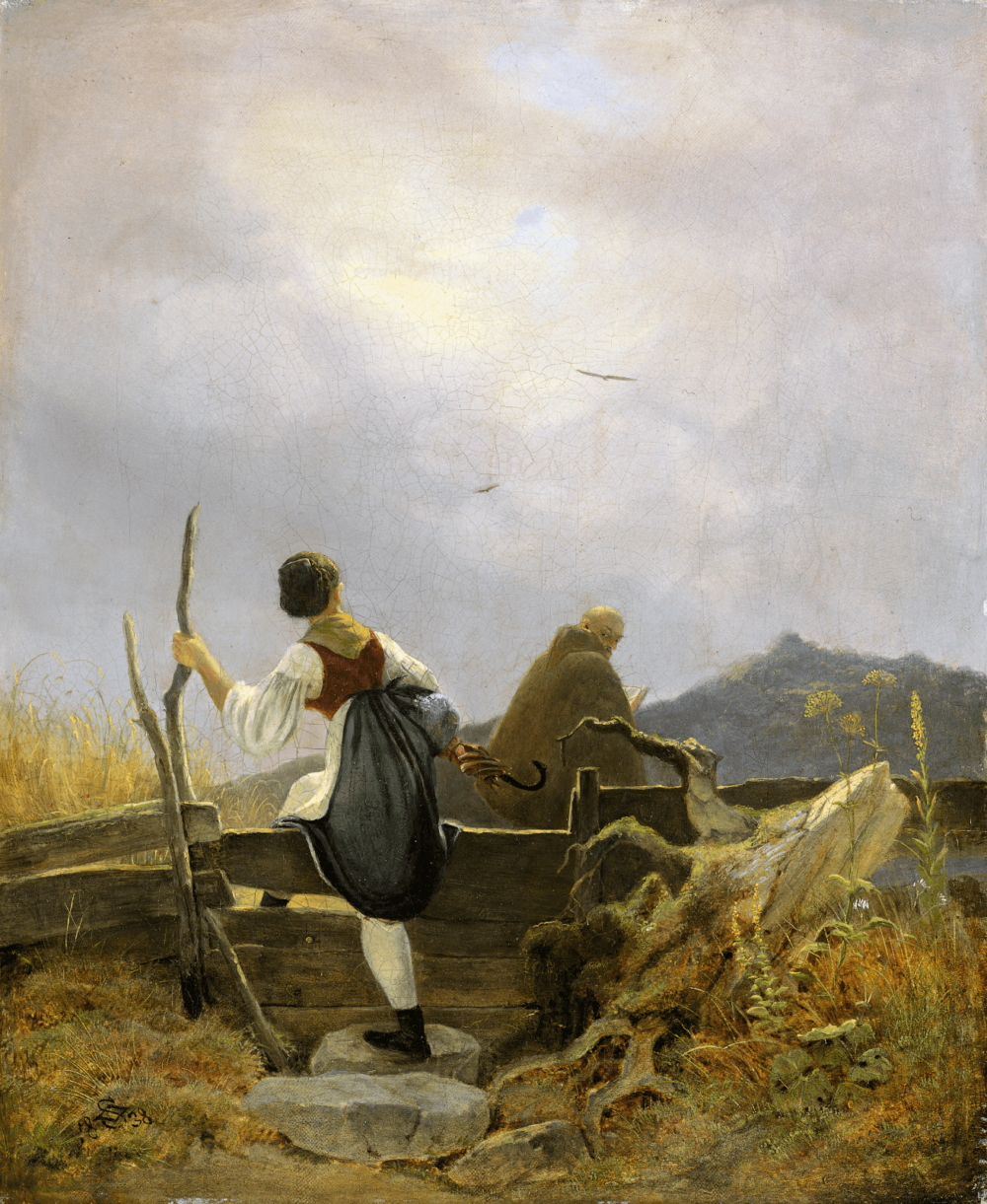 Carl Spitzweg, Sennerin und Mönch, 1838, Öl auf Leinwand, Museum Georg Schäfer, Schweinfurt