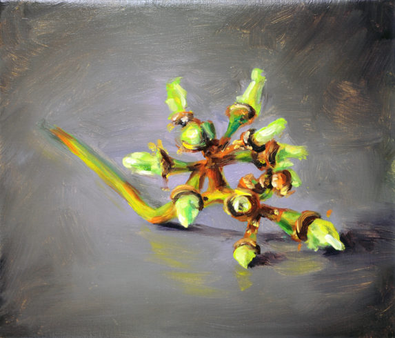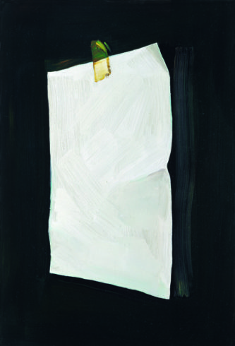 Malerei, die sich selbst zum Gegenstand macht, Rückbezüge schafft – denn im seltensten Fall sehen wir das Bild selbst, sondern vielmehr Bilder vom Bild. Mit profundem Wissen und einer hochkonzentrierten visuellen Sensibilität wählt der Künstler Motive von Rembrandt bis Jean-François Millet und von Édouard Manet bis Vincent van Gogh, die als Katalysatoren für seine ständige künstlerische Bildrecherche dienen. So gemahnt das mit einem Klebestreifen an der schwarzen Wand befestigte „Blatt“ von 2014 an die meisterlichen Trompe l’œils des niederländischen 17. Jahrhunderts. Das kollektive Bildarchiv der Kunstgeschichte verschmilzt mit der für Völker typischen Darstellungsweise von Dingen aus dem Alltag. Auf diese Weise stellt er die Beziehung zwischen Hoch- und Alltagskultur infrage – und provoziert mit seinem Auswahl- und Adaptionsprozess wiederum eine Reihe von Fragen: Was bedeutet es, Bilder in einem anderen Kontext zu reproduzieren? Ist es möglich, ästhetische Standards aus der Vergangenheit in eine neue, zeitgenössische Bildsprache zu übertragen? Völkers Interesse an historischen Gemälden wird getragen von dem ständigen Be- und Hinterfragen des Mediums an sich.