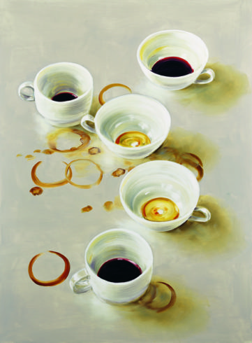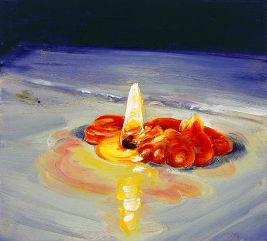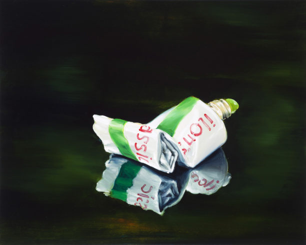 Seine Sujets sind die alltäglichen Dinge: Zerquetschte Tuben. Benutzte Pflaster. Ausgelesene Zeitungen, eine heruntergebrannte Kerze oder Bücherstapel im Atelier. Cornelius Völker malt überstreckte Hälse und blasse Knie ebenso akribisch wie kunstvoll aufgestecktes Haar oder heilende Wundnähte. Er hat Schokoladentafeln zum künstlerischen Thema erkoren, Marmeladenbrote, Hunde oder Meerschweinchen in Serie. Doch der eigentliche Protagonist in seinen Bildern ist die Farbe selbst. „Farbe hat ihr eigenes Verlangen“, sagt Cornelius Völker, „sie macht nicht alles mit.“