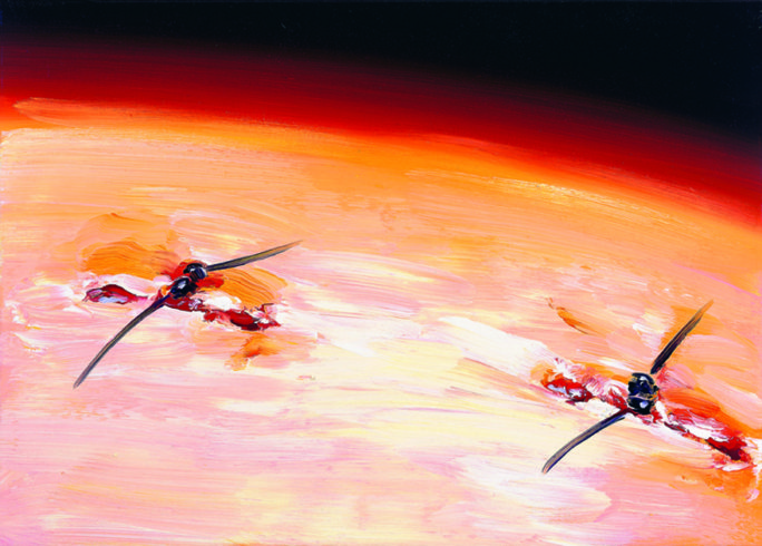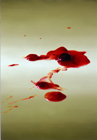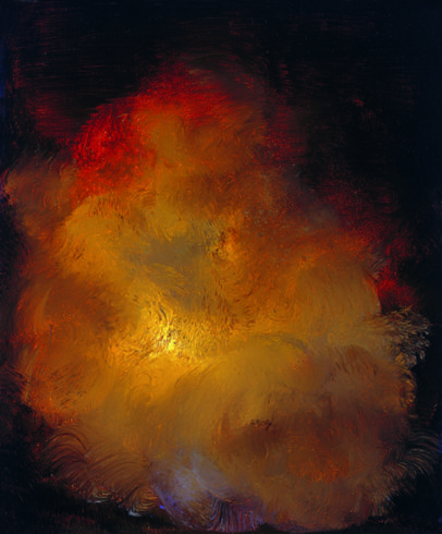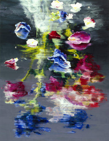 Ein Thema der neuesten in Münster gezeigten Arbeiten sind Blüten. Doch Völkers großformatige Stillleben verführen nicht mit klassischer Opulenz oder exotischer Vielfalt, bestechen nicht durch augentäuschende Naturnähe. Seine Blütenblätter sind vielmehr herabgesunken auf eine polierte Oberfläche, einen Spiegel vielleicht: Sie lassen in diffuser Reflexion und fast unbehaglich die Auflösung einer Blütenpracht ahnen, evozieren innere Bilder, gemahnen an die Vergänglichkeit. „Sicherlich weiß Völker ganz genau, dass er damit das ikonografische Terrain der Vanitas des siebzehnten Jahrhunderts betritt, in dem Stillleben die prachtvolle und doch vergängliche Schönheit von Blumen als Symbol für die Vergänglichkeit alles Lebenden einfingen“, betont Gail Kirkpatrick. „Und doch geht es Völker nicht in erster Linie um Symbolismus. Seine Blüten und Blütenblätter erscheinen nicht nur unbeständig in ihrer Rolle als Anspielung auf den Verfall, sondern dienen auch Völkers ureigenem Interesse an der rigorosen Dekonstruktion der Bildproduktion.“² Und so lassen auch seine aktuellen Wolkenbilder in ihrer bewussten Annäherung an die Abstraktion beim Betrachter faszinierende Fragen zurück: Sind es Wolken oder doch reine Farbwolken, die Völker auf die Leinwand bannt? Seine Werke geben keine Hinweise preis, stellen keinen Kontext her, sie wollen nichts erzählen – jedes seiner Motive schwebt gleichsam inmitten seiner Undurchdringlichkeit aus Farbe.