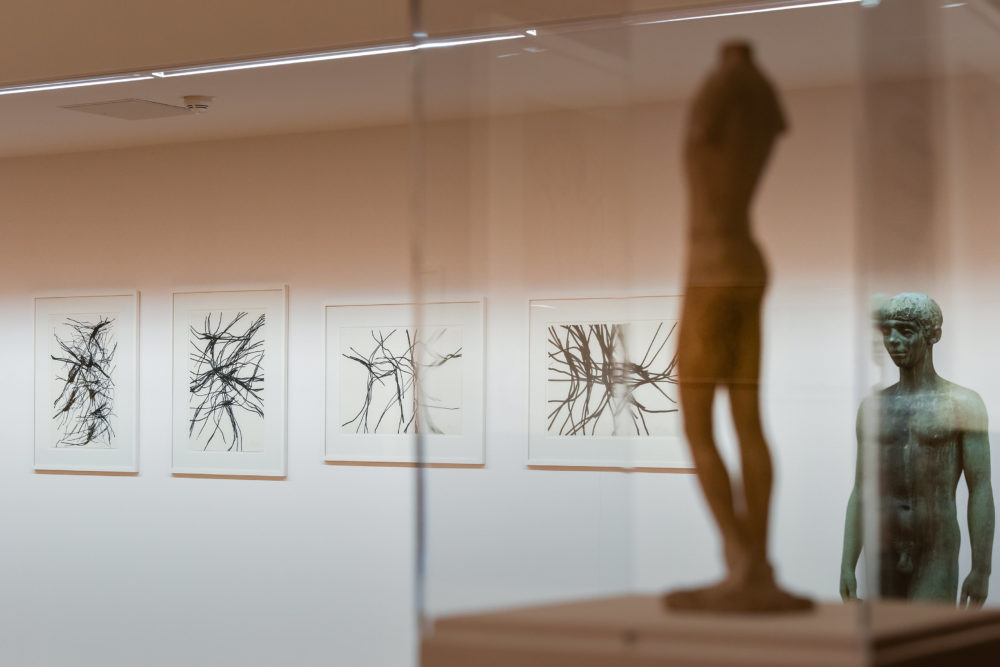 Neben den Plastiken präsentiert die Ausstellung im MKM Museum Küppersmühle auch zahlreiche Zeichnungen des Bildhauers bis hin zu seinen letzten Zeichnungen, den einzigartigen Schlussstrichen. Krickes Zeichnungen sind den Skulpturen keineswegs untergeordnet im Sinne von Entwurfszeichnungen, sondern haben einen eigenständigen künstlerischen Stellenwert. Krickes Statements auf Papier zeigen die Freiheit der Linie, die Freiheit der Bewegung und verleihen im Zusammenhang mit den „Raumplastiken“ seinem radikalen Erneuerungswillen des Skulpturenbegriffs nachhaltig Ausdruck. „Das sinnliche Erleben von Raum und Zeit, das in der genuin kricke‘schen Darstellung der ‚Raumplastik‘ seine Form findet und sich immer wieder im Augenblick des Sehens und Erlebens manifestiert, ist deshalb Bewegung im Raum, die niemals aufhört“, so Walter Smerling, Direktor des MKM.