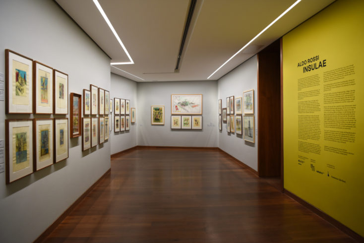Und jetzt also Aldo Rossi (1931–1997). Der Mailänder Baumeister gehört zu den maßgeblichen Designern und Architekten des ausgehenden 20. Jahrhunderts. Bemerkenswert dabei, dass sein Interesse zunächst gar nicht einmal der eigentlichen Baupraxis galt, sondern der theoretischen Auseinandersetzung mit dem Wesen des gebauten Raumes. Die von ihm eingeführten Begriffe wie Morphologie und Typologie des Bauens bestimmten lange die internationale Diskussion. Drei Kapitelüberschriften gliedern die Schau im Tchoban Museum: Da ist zunächst der „Corpus Mediolanensis“, Zeichnungen und Grafiken vor allem zum frühen gebauten Werk also, das sich im Wesentlichen im Großraum Mailand findet (die Entwürfe etwa zum Rathausplatz mit dem Denkmal der Resistenza für Segrate oder dem erhaben-grandiosen Friedhof von San Cataldo/Modena). Die titelgebende Insula, die Insel, bekanntlich die Bezeichnung altrömischer Mietshäuser, meint hier aber vor allem den für Rossi so wichtigen Bezug auf antike Vorbilder ganz allgemein, ihre Strenge und Ordnung.