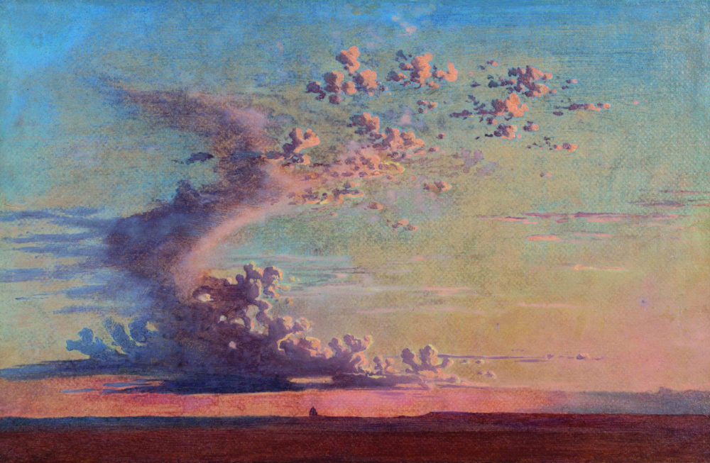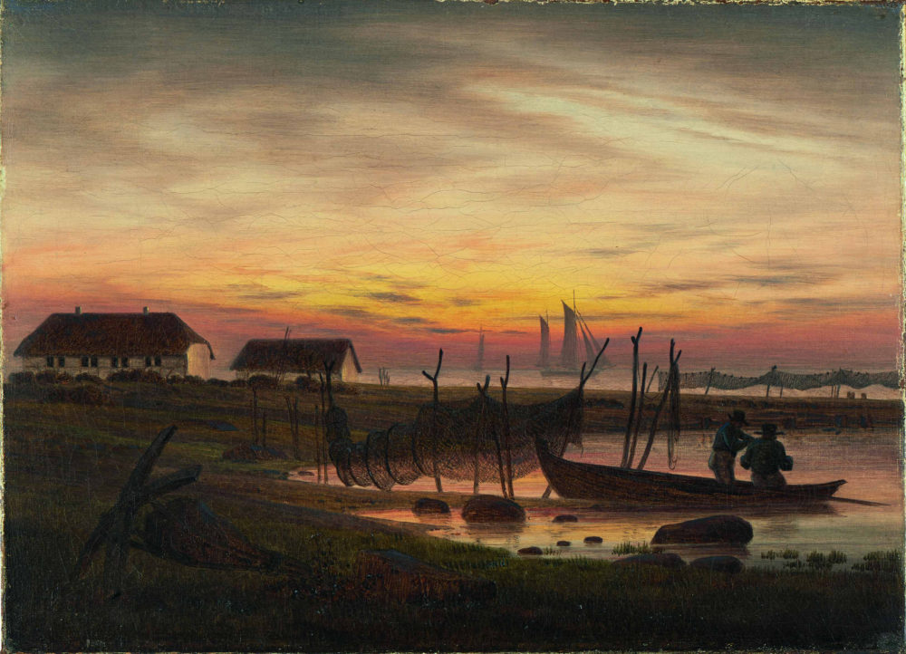 Davon kann man sich beim Rundgang durch die Ausstellung selbst überzeugen. Eröffnet wird sie durch eine ganze Serie wundervoller Wolkenstudien des Schweizer Künstlers Johann Jakob Frey. Sie bezeugen „Das Flüchtige: Die Magie des Augenblicks“ (so der Titel der Sektion) ebenso vortrefflich wie die von einem hohen Himmel beherrschten nordischen Landschaften des Lübecker Malers Johann Wilhelm Cordes. Derweil haben Théodore Gudin, Andreas Achenbach und Heinrich Reinhold die Magie des tosenden Aufs und Abs der Wellen in ihren Blättern eingefangen.