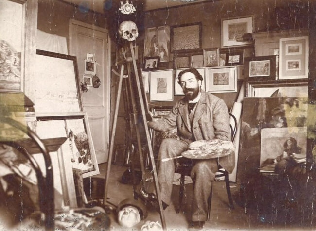 Mit dem Totenschädel an der Staffelei