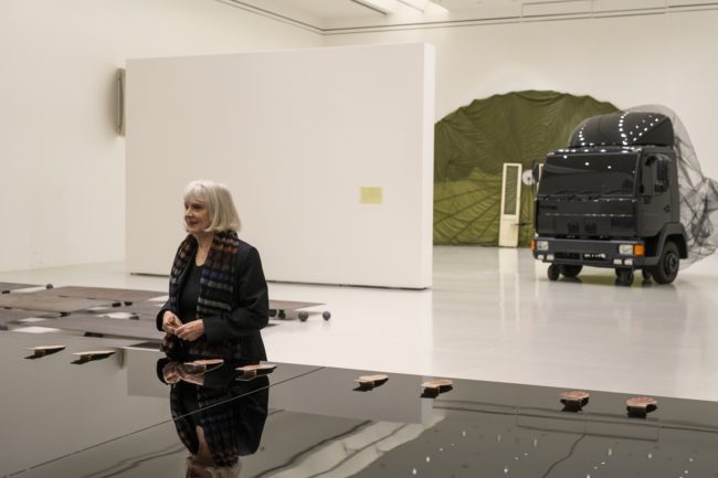 Alles im Fluss– das ist typisch für Christiane Möbus. Es könnte auch als Motto über der Doppelausstellung zu ihrem 75. Geburtstag stehen. In Hannover, einem ihrer beiden Wohnorte (der andere ist Berlin), haben das Sprengel Museum und der Kunstverein diese Hommage organisiert. Eine Auszeichnung, die mehr als verdient ist: Obwohl Christiane Möbus das Kunstgeschehen seit beinahe einem halben Jahrhundert mit ihren einfallsreichen und witzigen Objekten bereichert, hat sie nicht jenes internationale Renommee erlangt, das ihrem Œuvre angemessen wäre. Die Doppelausstellung mit dem poetisch-verrätselten Titel „Seitwärts über den Nordpol“ will das ändern. Bewegung ist auch hier Trumpf. Als Garanten der Mobilmachung figurieren im Sprengel Museum und im Kunstverein beispielsweise die LKW-Installation Schneewittchen, das aus 30 Postkarten bestehende Mississippi-Projekt, diverse Koffer, zwei (unbrauchbare) Rettungsboote sowie eine aus Hausrat bestehende Wanderdüne mit Globus. Skulpturen und Fotografien sind ebenso Bestandteil der Schau wie filmische und installative Arbeiten.