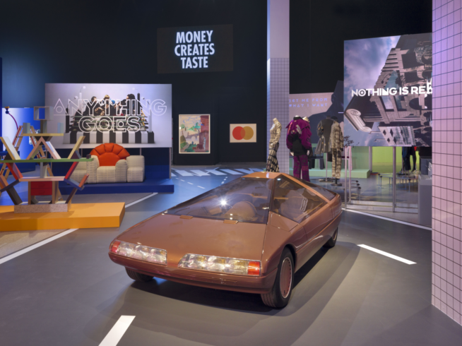 All die genannten Zusammenhänge zu entfalten, ist freilich nicht einfach. Sie entziehen sich im Grunde der Visualisierung im Medium einer Ausstellung und kommen voll zum Tragen erst im schwergewichtigen Katalog. Mag der so fröhliche wie ironische Hedonismus der Postmoderne auch heute fast befremdlich (wenn nicht gar unanständig) erscheinen, so gibt es in der Bundeskunsthalle zum Glück doch reichlich Augenfutter: So schwelgt Hans Hollein verliebt mit Messingpalmen im Exotischen bei seinem Wiener Reisebüro. Die erfrischende postmoderne Grundidee, dass alles auch ganz anders sein könne, ein Ausweg aus der (scheinbaren) Alternativlosigkeit des Funktionalismus, steht Pate bei Cindy Sherman mit ihren multiplen Ichs. Eine Fiktionalisierung, könnte man sagen, wie auch beim Citroen Konzeptfahrzeug Karin, einem Entwurf des Italieners Trevor Fiore, der die eigentlich unvereinbaren formalen und technischen Grundannahmen der statischen Pyramide und des dynamischen Automobils zu einer zugegeben sehr widersprüchlichen Einheit bringt. Na und? Anything goes!