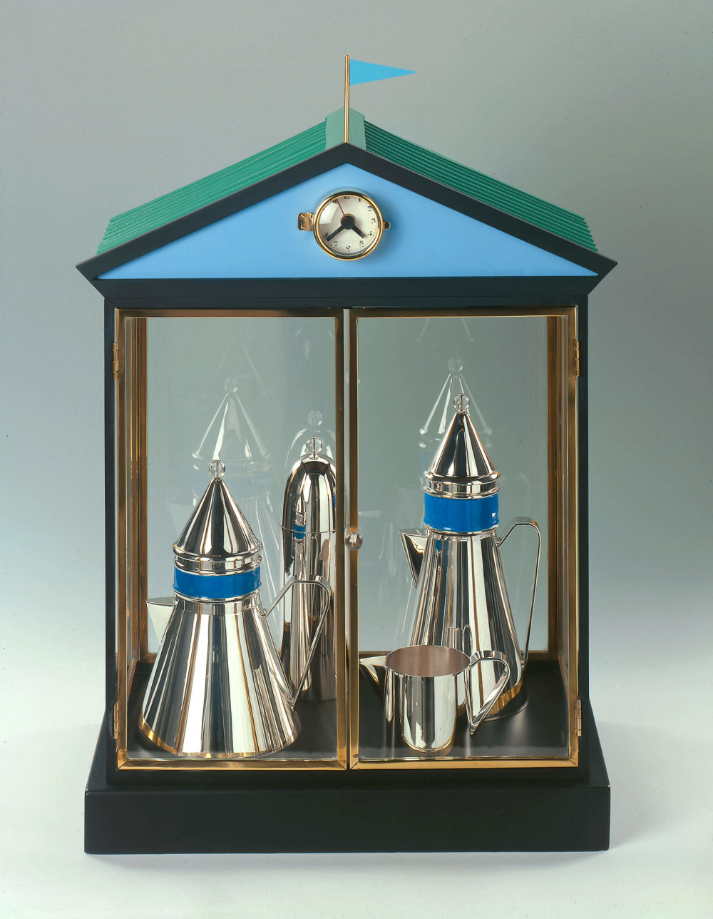 Mit Adaption, Zitat und Ironie wurde die geradlinige Fortschrittserzählung der Moderne ausgehebelt, die Vergangenheit zum unerschöpflichen Form-Reservoir. Nahezu alle Namen aus Venedig damals sind heute in der Bonner Ausstellung vertreten. Dort ist auch zu sehen, dass die Baukunst zwar die Leitgattung der Postmoderne war – unübersehbar in den zahlreichen Museumsneubauten jener Jahre in Frankfurt, Stuttgart, Wien und andernorts, aber diese neue Form eines spielerischen Historismus auch in anderen Bereichen begeistert aufgegriffen wurde. Die italienische Gruppe Memphis aus Mailand gelangte mit ihren Entwürfen für Möbel, Leuchten und allerlei Haushaltsobjekte zu internationalem Ruhm. Die Postmoderne polarisierte mit ihrer Exzentrik: Es gab wütende Ablehnung seitens der Verfechter von Funktionalismus und „guter Form“, aber auch Scharen enthusiastischer Käufer. Die Präsenz der Marke Alessi in der Küche wurde bald zum Ausweis trendbewusster Zeitgenossenschaft: Am Schnittpunkt vieler Linien der Postmoderne: Charles Jencks. Als Gestalter, Architekt, vor allem aber als Autor war der Brite enorm sichtbar: Sein Buch „Die Sprache der postmodernen Architektur“ erlebte ab 1977 zahlreiche Auflagen. Jencks, wie viele seiner Mitstreiter ein eifriger Polemiker, nannte in seiner systematischen Übersicht über die Postmoderne sogar ein exaktes Geburtsdatum, den 15. Juli 1972, 15:32. Denn just dieser Augenblick der Sprengung der in den 1950ern als typisches Projekt der rationalen Moderne errichteten Wohnanlage Pruitt-Igoe in St. Louis leitete für ihn den Tod der funktionalistischen Moderne ein …