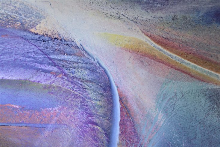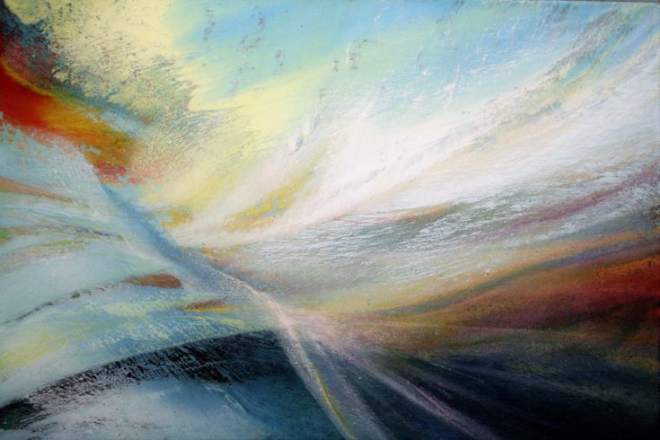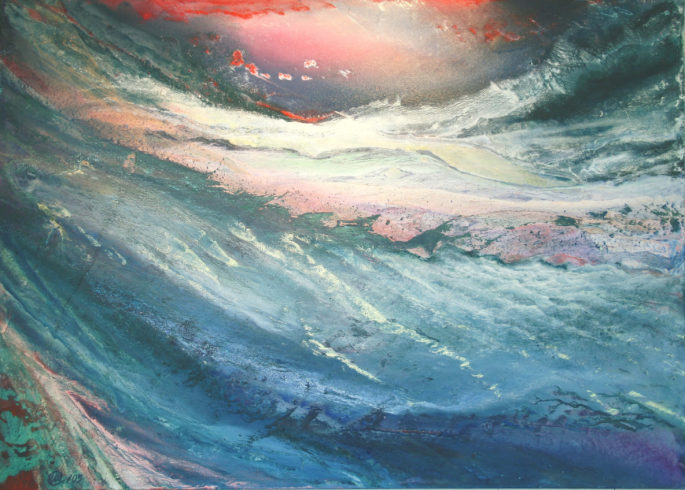 Der Facettenreichtum, der bei dieser Reise immer wieder an die Oberfläche tritt, zeigt sich uns durch das kaleidoskopische Prisma des vielschichtigen Künstlers Cesare Marcotto: Nach erfolgreichem Abschluss des Instituto D’Arte N. Nani in seiner Geburtsstadt Verona, arbeitete er mehrere Jahre europaweit in Opernhäusern als Bildhauer und Bühnenbildner, wo er das Fiktive inszenierte. Zeitgleich war er viele Jahre auch als Höhlenforscher tätig, womit er sich einer realen Herausforderung stellte, die eine intensive körperliche Erfahrung von Licht- und Schattenverhältnissen sowie den Elementen Erde, Luft und Wasser mit sich brachte. Diese langjährigen Gegensätze von inszenierter Fiktion und realer Herausforderung, von Gefühl und Verstand, die dem Künstler immer wieder eine Auslotung abforderten, führten zu zahlreichen irisierenden Erfahrungsschichten seiner Person, die er in seinen Werken umsetzt und sich Schritt für Schritt durch diese Schichten arbeitet (…)