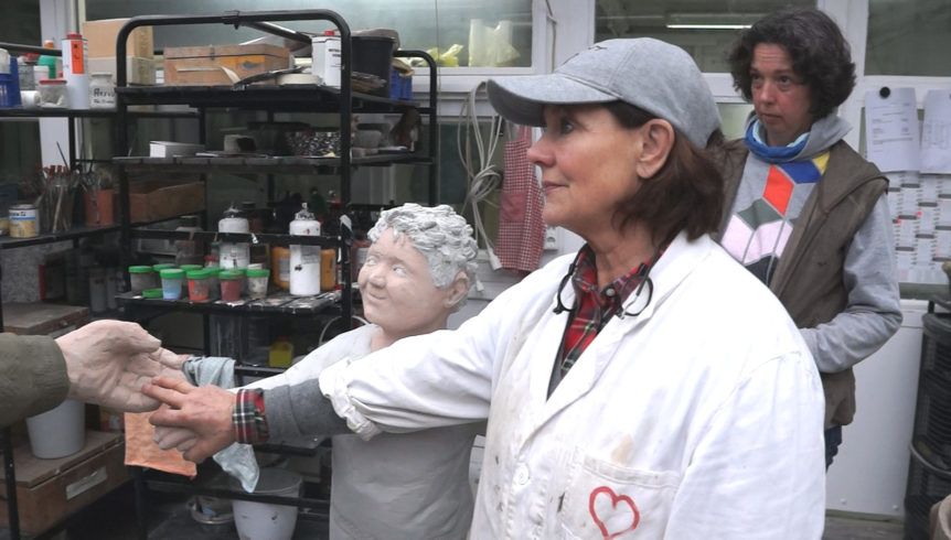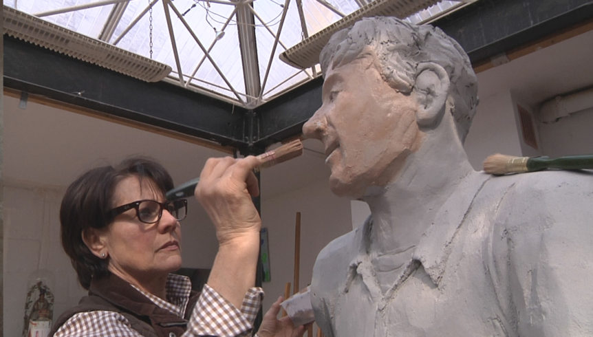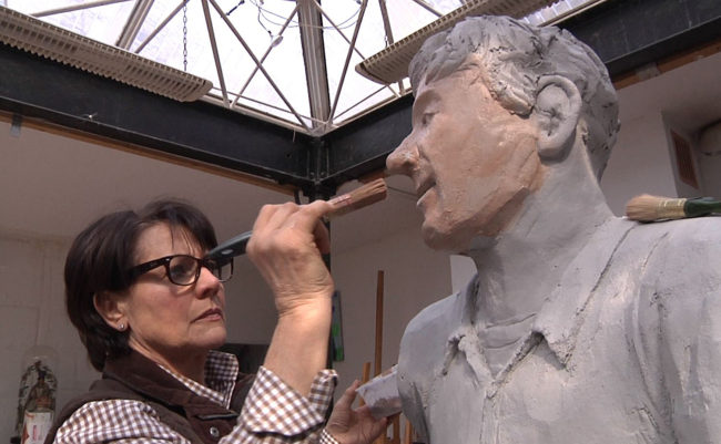 Vor allem die Körperhaltung trägt dazu bei, und hier sind anatomische Vorstudien wichtig. Das Tonmodell wird oftmals wieder und wieder korrigiert, bis alles stimmig ist. Dann schneiden Christel Lechner und ihre Mitarbeiter einen Skulpturenkern aus leichtem Kunststoff, ändern, erneuern und ergänzen. Erst dann wird das Trägermaterial mit einer großzügigen Schicht Beton versehen und der Kopf darauf modelliert – ein Nachbessern ist nicht möglich. Überhaupt, der Gegensatz zwischen Ton und Beton ist für die Künstlerin buchstäblich greifbar: „Ton ist eine leicht modellierbare Masse, die man immer wieder korrigieren kann“, erklärt die Künstlerin, „Beton fühlt sich anders an, ist anders formbar.“ Die richtige Konsistenz spielt eine entscheidende Rolle: Die Masse muss sich noch gut mit der Kelle verstreichen und mit Werkzeugen in den Details bearbeiten lassen. „Und Handschuhe müssen bei der Arbeit auf jeden Fall sein.“