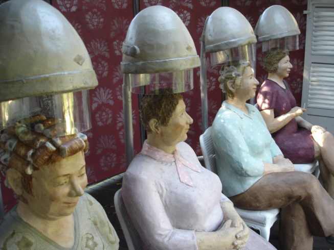 Sie treten allein, mit Hund oder in Gruppen auf, tragen Anzug, Kittelschürze oder manchmal auch nur ein Feinripp-Unterhemd. Ob unter der Dusche, im Badeanzug oder mit Lockenwicklern unter der Trockenhaube: Immer jedoch zaubern die „Alltagsmenschen“ von Christel Lechner ein Lächeln auf viele Gesichter.