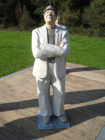 Stillstand ist Christel Lechners Sache nicht – und mit 40 Jahren stellte sie nicht nur im Privatleben, sondern auch beruflich die Zeichen auf Neubeginn. Groß sollten ihre zukünftigen Objekte sein, widerstandsfähig, und nachdem ihr Meisterstück, ein riesiger Lebensbaum aus Ton, plötzlichem Frost zum Opfer gefallen war, auch unbedingt witterungsbeständig. „Durch meinen Mann bin ich zum Werkstoff Beton gekommen“, erinnert sie sich, „er entwickelte zu jener Zeit ein neues Kachelofen-Projekt, für das Beton verwendet wurde.“ Heute arbeitet sie mit einem Beton, der gleichermaßen hitzebeständig wie frostfest ist. Mit dem Material kamen auch die Skulpturen – zuerst waren es Tiere, die Christel Lechner formte, dann wandte sie sich ihren teils überlebensgroßen „Alltagsmenschen“ zu.