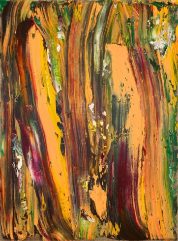 Auf ein spezifisches Werk nimmt sie hingegen bei Edvard Munch Bezug: Darin greift sie die geschwungenen, orange leuchtenden Linien des Himmels sowie die gewundenen Konturen der zentralen Figur aus Munchs Gemälde Der Schrei von 1893 auf. Nur dass sie diese in einen enigmatischen, Isolation suggerierenden Vorhang verwandelt, aus pastosen, orangefarbenen Pinselschwüngen, die sich – gerakelt – mit darunterliegenden Schichten in Rot und Grün vermischen.