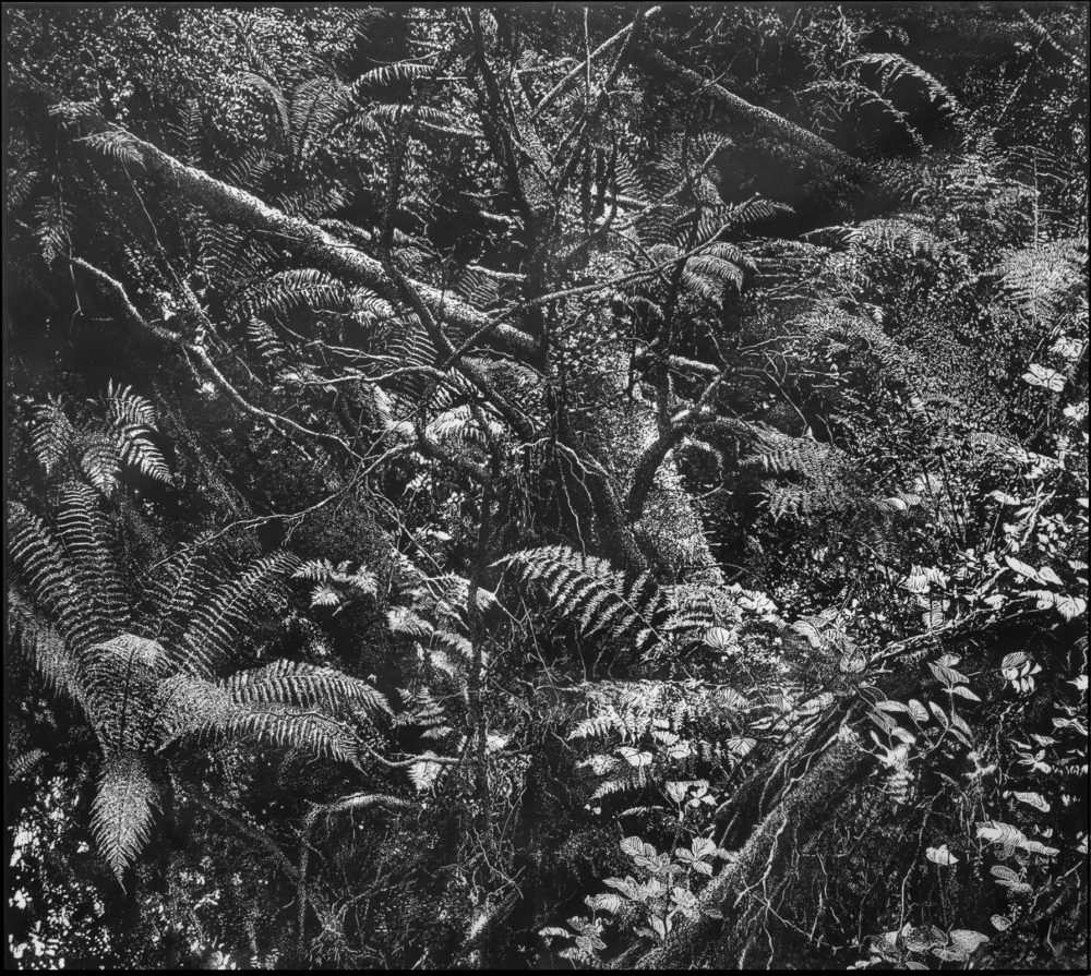 Baumstämme. Äste, Blattwerk, Farne. Motivisch zeigen die aktuellen Werke von Georges Wenger Wälder, Ausschnitte aus der Natur. Doch sind das Fotografien, die auf dickem, saugfähigem Papier gedruckt wurden? Handelt es sich um fotorealistische Malerei? Oder um Radierungen?