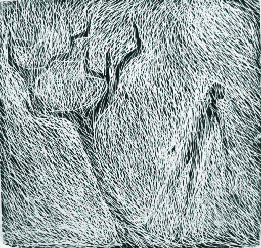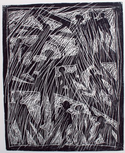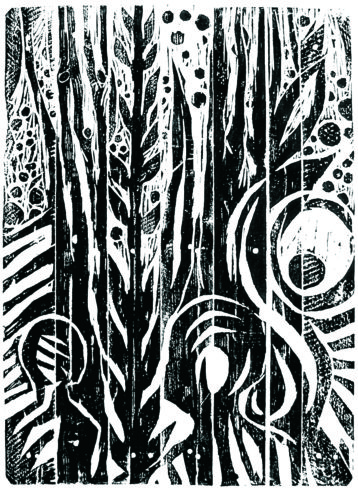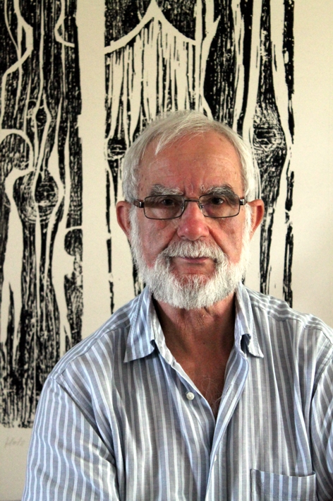 Von großer Bedeutung ist für den Künstler der materialgerechte Umgang mit dem Holz, aus dem er seine Druckstöcke anfertigt, es erfordert ein sensibles Eingehen auf die im Werkstoff Holz vorgegebenen Strukturen und Eigenheiten: „In den verschiedenen Holzmaterialien wohnen die verschiedensten Geschichten. Jedes Holz sagt mir, was in ihm steckt. Sagt mir, mit welchem Werkzeug ich es gestalten muss … Ich kann es mit spitzer Nadel kratzen und stechen, mit den Fräsköpfen der Bohrmaschine traktieren, den Winkelschleifer über das Holz jagen, dass es qualmt, oder es mit der Stahlbürste ‚streicheln‘, bis es mir seine Maserung deutlicher zeigt.“ Meist jedoch arbeitet der Holzschneider mit dem Messer, Teppichmesser, mit dem Hohleisen zum Freilegen von Flächen und dem Geißfuß für feine, zarte Linien, genauso, wie seine Vorgänger einer fast sechshundertjährigen Tradition des Holzschnitts. Er führt einen aufmerksamen und sensiblen Dialog mit der vor ihm liegenden Holzplatte oder Holzbohle, deren „Risse und Verletzungen von der Vergänglichkeit der Dinge erzählten, von den Wunden, Verletzungen, die Menschen Menschen, der Natur zufügen … Alle Linien, Flächen, die ich dem Holz abgewinne, liegen einige Millimeter tief im Holz. Sie können, wenn ich mit der Walze die Farbe auf den Druckstock bringe, diese nicht aufnehmen, alles Weggeschnittene bleibt weiß. Nur von den hochstehenden Formen wird Farbe angenommen. So entsteht aus dem Weggeschnittenen, dem Stehengelassenen im Hell-Dunkelkontrast das Motiv.“