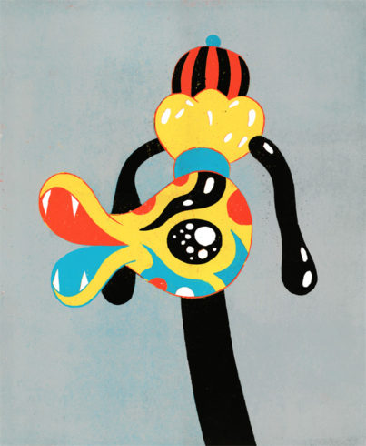 Wer schreibt, bleibt. Roman Klonek weiß das und macht sich gerne Notizen. Dass diese nicht aus Worten bestehen, mag das Ergebnis seines Arbeitsprozesses sein. Sein Ideenfundus besteht aus Skizzen, kleinen Variationen von Figuren und Formen, Abstraktionen aus Cartoon und Andersweltlichem. Auch denken sie nicht rückwärtig und erinnernd, sondern sind in ständiger Verwandlung zukünftig ausgerichtet. So könnte man sagen „wer skizziert, der wird“. Was genau aber macht der Düsseldorfer Künstler, wenn er täglich zeichnet, Altes neu erfindet und dann letztlich einen kleinen, selektiven Teil davon zum Holzschnitt erhebt?