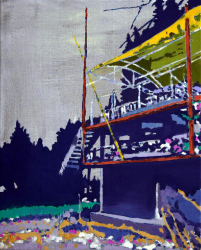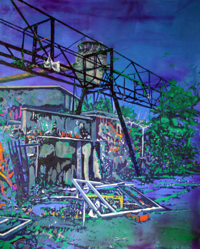 Vor dem Hintergrund dieser ambitionierten Idee geht der Maler hinaus ins Freie, erkundet sein Umfeld. Das gefundene Stück morbid-vitaler Landschaft ist die Veranlassung seiner Malerei. Keine erdachten, sondern dem Realen entnommene Orte speisen seine Bildideen.