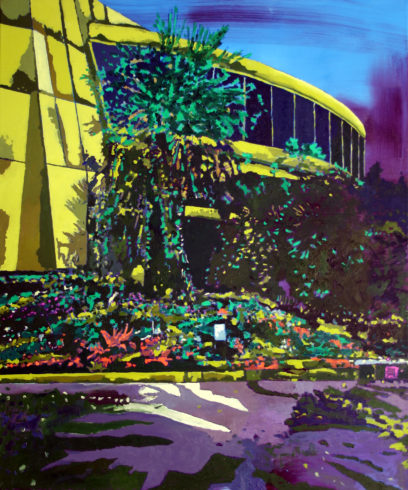 Die Idee: Architekturen als Metaphern für Eingriffe in die Natur, deren Verdrängung und schleichende Zerstörung. Architekturen so stolz, modern und stark sie einmal waren, noch ahnt man es, dann versehrt, befleckt, ruinös im Prozess des Verfalls geschwächt und nun der vitalen Kraft der Natur, deren Blätter- und Blütenpracht, Tieren, Mikroben, Geflechten, dem Wechsel der Jahreszeiten, Kälte und Wärme, Feuchtigkeit und Trockenheit ausgesetzt und unterlegen. Die wandelnde Gewichtung der Kräfte von Mensch und Natur bildnerisch zu erkunden, mittels der Farbe in ungezählten landschaftlichen Stimmungsfacetten auszuleuchten, ist offenbar Müllers Anliegen.