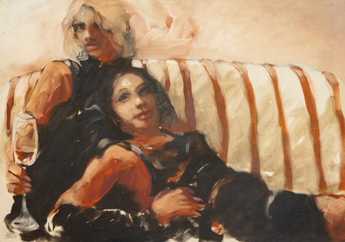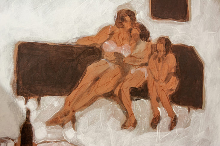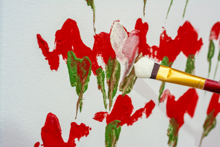 Besonders schätzt der Maler die Emulsion, um die Vorteile der wässrigen schnell trocknenden mit den buttrigen öligen Bindemitteln zu vereinen. Sie gibt ihm zusätzlich die Freiheit, die Transparenz der Farbe zu steuern, ermöglicht ihm, eine Spannung im Figur-Grund-Verhältnis zu schaffen und – aufgrund der gestischen Malerei – die Ergänzungstätigkeit des Betrachters zu aktivieren. „Man spürt, ob ein Bild gelungen ist. Dass der Pinselduktus erkennbar ist, ist reizvoll und macht eine gute Malerei aus. Oder anders ausgedrückt: Wenn die Interdependenz zwischen Material, Werkzeug und Verfahren harmoniert, spürt das auch der Laie. Gute Malerei zeichnet sich durch einen gut sitzenden Pinselstrich aus – oder besser: durch möglichst viele davon. Langes elastisches Pinselhaar etwa, wie man es für die Aquarellmalerei einsetzt, geht nur mit einer sehr wässrigen Farbviskosität zusammen, die auf einen eher vertikal positionierten Malgrund aufgebracht wird.“
