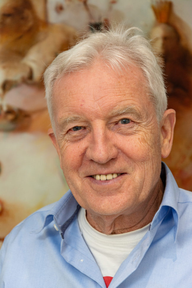 Dass er eines Tages gestisch und spontan im Dialog mit seinen Malmaterialien arbeiten würde, war nicht absehbar, als er Anfang der 1970er-Jahre das Kunststudium an der Karlsruher Akademie aufnahm, um das Malen in fotorealistischer Manier mit glatter Oberfläche ohne sichtbaren Pinselstrich zu erlernen. Bei den Neuen Wilden, die hier gerade aufbegehrten, um mit obsessiv ausgeführten, materialintensiven Werken gegen den vorherrschenden Kunstbegriff zu rebellieren, eckte er mit seinen Verweisen auf die Malerei der Surrealisten an – und wechselte nach einem Semester zum Fachbereich für Kunst- und Werkerziehung an der Universität Mainz.
