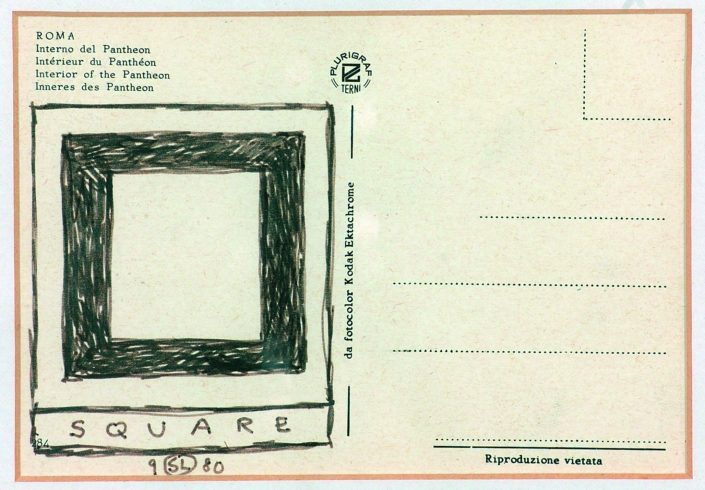 Hoppe-Ritter: Das erste Werk in meiner Sammlung stammt von Sol Lewitt aus dem Jahr 1980. Es zeigt ein schwarzes Quadrat auf der Rückseite einer Postkarte, auf der die Kassettendecke des Pantheons in Rom zu sehen ist.