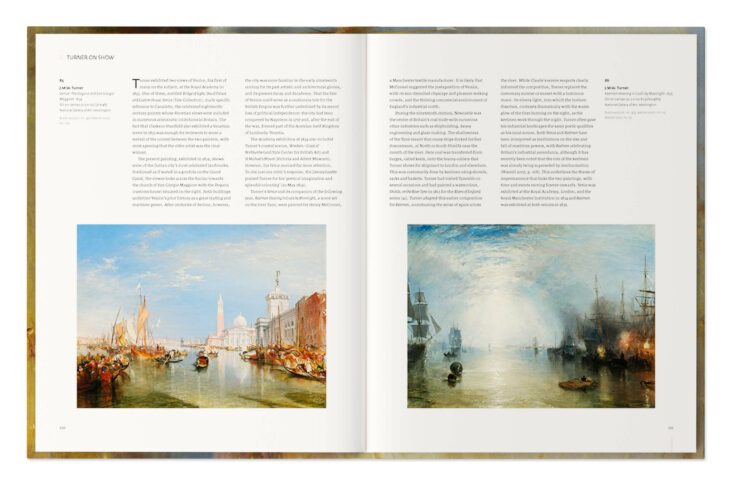 Die reich bebilderte Publikation versammelt viele der prominenten Seestücke William Turners. Sie beschreibt, wie der Künstler bei der Darstellung des Meeres neue Wege erschloss und darin auch immer Herausforderungen für das Publikum formulierte. Die Publikation beleuchtet die selbstbewusste Reaktion des Künstlers auf das Werk seiner Zeitgenossen, darunter John Constable, August Wall Callott, Richard Parkes Bonington und Clarkson Stansfield, und erforscht die vielschichtige Wirkung seiner Seestücke in der Marinemalerei nachfolgender britischer, europäischer und amerikanischer Künstler.