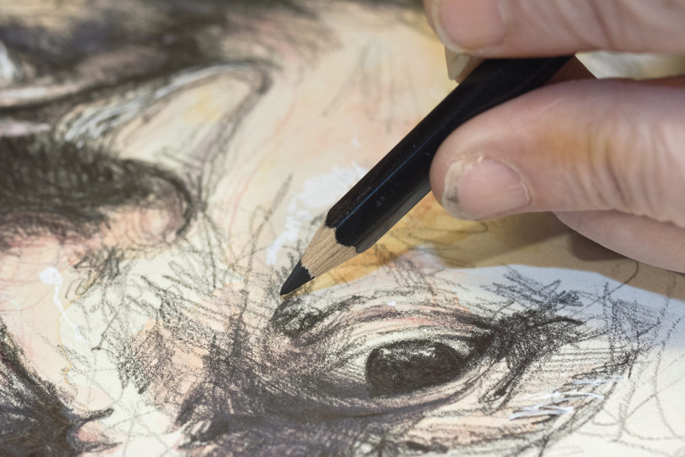 In seinen mit Bleistift, Kohle oder Federgezeichneten, ausdrucksstarken Porträts etwa neigt er zu einem eher zurückhaltenden Farbenspiel in Aquarell, Farbstift oder Sepia. Er schätzt den formalen Freiraum, den das Porträt bietet. „Man muss ein guter Zeichner sein, um den Charakter einer Person in der Zeichnung herauszuarbeiten.“ Eine Herausforderung, der sich der Künstler nur stellt, wenn ihn die porträtierte Person interessiert, wenn sie ihn berührt oder fasziniert.