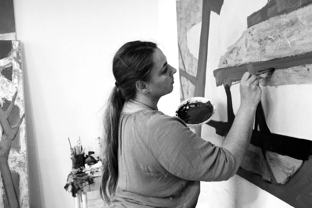 Das heißt aber nicht, dass sie nach ihren Fotos malt, sondern ihre Gemälde entstehen vollkommen losgelöst davon. Hat sie erst einmal eine Formen- und Farbkombination gefunden, die sie fasziniert und inspiriert, entstehen daraus ganze Serien. Parallel zur Serie der Fragmente sind sogar plastische Arbeiten aus Streichhölzern entstanden. Auch diese kleinen Skulpturen nutzt sie als Inspirationsquelle für die Malerei.
