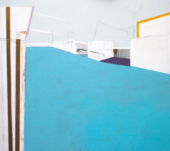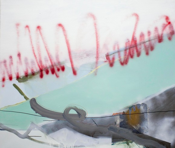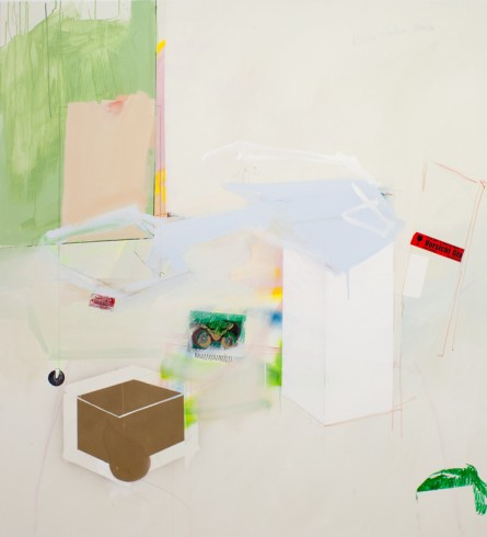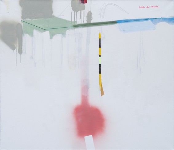 Auch Velkaites Malerei stellt die Frage nach der Wirklichkeit des Dargestellten, sie bietet dem Betrachter in ihren Bildern Seh- und Sinnangebote, die sich bei genauerem Hinsehen gleich wieder aufzulösen scheinen. Ihr 2011 gemaltes Bild „Wunderschön“ – ausnahmsweise hat die Künstlerin hier einen Titel vergeben – scheint einen Innenraum zu zeigen. Kubische Körper, lineare Einschreibungen und Konturierungen, Collageelemente, sie geben erst einmal die entsprechenden Hinweise. Doch überall lösen die ineinander verlaufende Malerei und die wie schwebend eingebrachten Farbschleier die gerade erst gewonnene Sicherheit wieder auf. Was ist vorn, was in der Mitte und was hinten im Raum des Bildes? Auch die eingeklebten Papiere und Etiketten oder der übermalte, aber gerade noch lesbare Schriftzug „Bitte stehen lassen“ helfen nicht, um der Ambivalenz der Seherfahrung zu entkommen. Das Gefühl, sich des Gesehenen niemals wirklich sicher sein und den eigenen Augen nicht wirklich trauen zu können, ist das Resultat einer intensiven, von Intuition wie von Reflexion, von Zufall und planerischer Konstruktion gleichermaßen bestimmten künstlerischen Vorgehensweise. Der erste Bildentwurf unterliegt einem Prozess der beständigen Reduzierung, bei dem die am Anfang noch sichtbaren gegenständlichen Elemente fortschreitend eliminiert werden – durch Übermalung, Verfremdung, Veränderung, gestische wie skripturale Eingriffe und Akzentuierungen. Komplizierte Einzelformen verwandelt die Künstlerin in stark vereinfachte Kompositionselemente, die sich auf den ersten Blick als homogene Farbflächen, auf den zweiten Blick allerdings als aus vielfachen Übermalungen entstandene und in vielen Nuancen schimmernde Farbkörper erweisen. Der Prozess der Bildwerdung ist in ihnen eher zu spüren oder zu ahnen, als man ihn wirklich festmachen könnte. Nach dieser meist großflächigen Beruhigung trägt Evelina Velkaite durch zeichenhafte und zeichnerische Einschreibungen, durch malerisch-gestische Akzente, wieder zu einer Beunruhigung und Infragestellung des gerade erst hergestellten „Friedens“ auf der Bildfläche bei. Sie versucht diese beiden Pole in einer harmonischen und gleichzeitig dynamischen Balance zu halten, Beruhigung und Störung als die zwei konträren Teile eines Ganzen zu akzeptieren.