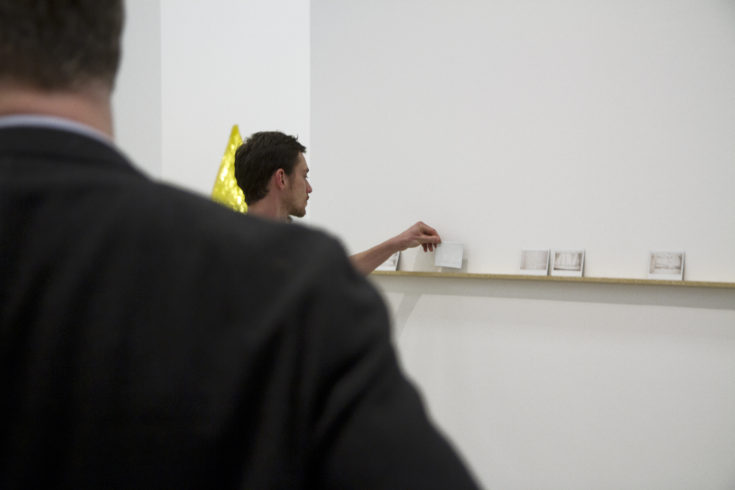Bereits während seines Studiums machte Gerrit Frohne-Brinkmann immer wieder durch mal spektakuläre, mal ganz subtile Performances auf sich aufmerksam. So trat er 2015 während der Jahresausstellung der HFBK vor das versammelte Publikum. Er setzte gerade an zu einem Vortrag, als ihm seine Professorin Ceal Floyer plötzlich und ohne jede Vorwarnung von hinten eine Flasche über den Kopf schlug. Der Kunststudent fiel theatralisch zu Boden und blieb dort erst einmal zehn Sekunden lang liegen. Der verblüffende Show-Effekt war gelungen. Doch „Stunt“ (2015), so der Titel der Arbeit, war weit mehr als bloß ein Aufsehen erregender Slapstick-Akt mit einer täuschend echt wirkenden Flasche aus Stuntglas. Frohne-Brinkmann ging es durchaus auch darum, das ambivalente Verhältnis zwischen Professorin und Student, Lehrender und Lernendem prägnant auf den Punkt zu bringen. In der 2013 ebenfalls an der HFBK aufgeführten Performance „2 Hours Show in 20 Minutes!“ gab Gerrit Frohne-Brinkmann in einem Raum mit sechs größeren Arbeiten verschiedener Studenten vor Publikum Führungen. Nachdem er die Bilder, Skulpturen und Videos kurz erklärt hatte, holte er ein Feuerzeug aus der Tasche und löschte mit der Hitze der Flamme, einem Zauberer gleich, die Beschriftungen von den an der Wand angebrachten Schildern. Zum Schluss zauberte er die zuvor „verschwundenen“ Buchstaben hinter dem Ohr eines Besuchers hervor und ließ sie auf den Boden fallen, wo sie ein chaotisches Gewimmel bildeten. Was ihn an Inszenierungen dieser Art interessiert, ist es, das standardisierte Reden über Kunst, die eingefahrenen Konventionen und Selbstverständ-lichkeiten des Kunstbetriebs durch theatrale und magische Überraschungsmomente bewusst zu machen und gleichzeitig zu hinterfragen. „Mich interessiert auch der Unterhaltungsbereich der Kunstgeschichte“, sagt Gerrit Frohne-Brinkmann. „Die Low Art im Entertainmentbereich.“
