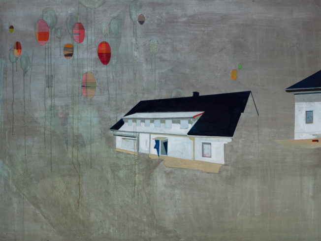 Reichlich Platz bietet dafür auch die Arbeit Balloon von 2016. Es zeigt nur die Hülle eines Gebäudes, surreal ragt das Dach ins Leere. Hier kommt der Prozess der Bildwerdung, dem unendlich viele Lösungen innewohnen, ebenfalls zum Ausdruck. Die Künstlerin liebt es, in ihren Werken zu addieren oder subtrahieren, Bauten, die sie meist auf der Basis fotografischer Vorlagen auf der Leinwand gestaltet, erheblich zu verändern. In einigen Gemälden sind sämtliche Lebensalter eines Hauses von der Entwurfsphase bis zum Verfall in ein und derselben Architektur vorhanden, wie beispielsweise in We are coming down (2011). Die Gleichzeitigkeit der verschiedenen Stadien stellt sowohl die Prämisse von Kontinuität als auch die Existenz von Gegenwart in Frage. Mit großer selbst erprobter Freiheit führt Lohmann vor, wie Kunst dekonstruieren darf, ohne dabei ins Bodenlose zu kippen.