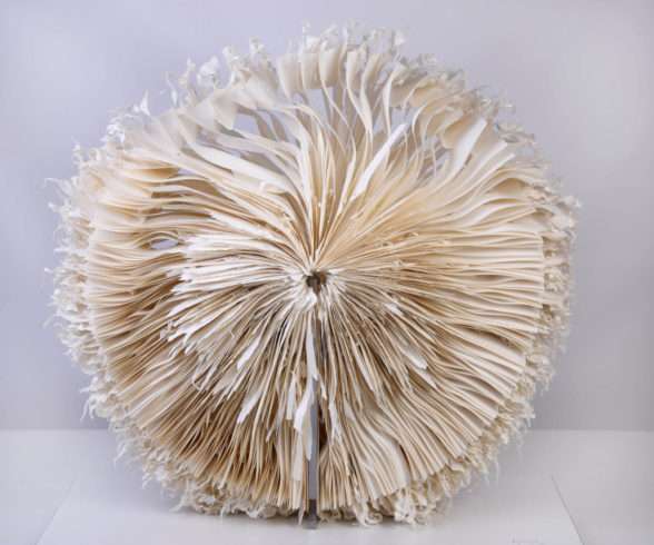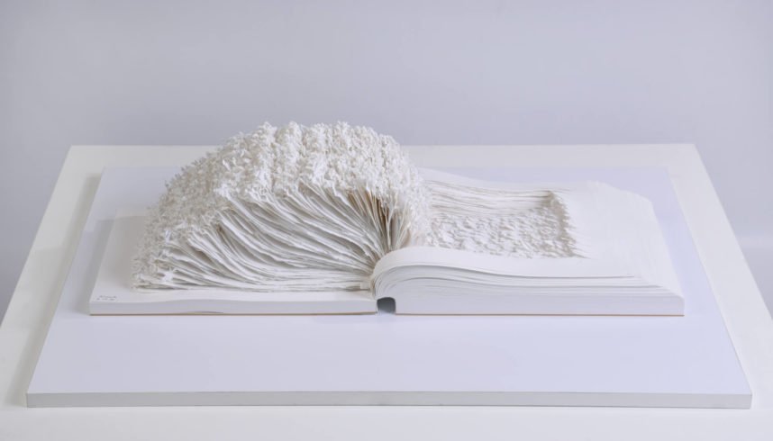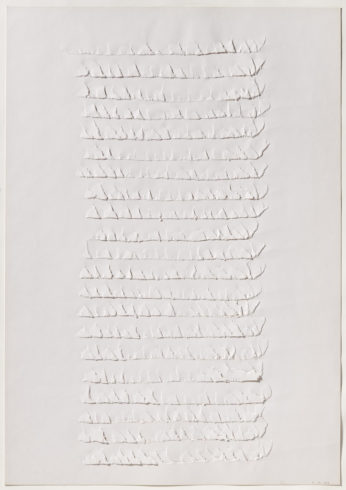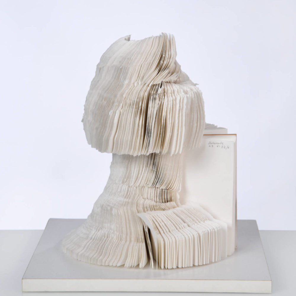 „Das Buch“, interpretiert Simone Schimpf, „diente ihm, wie der Marmorblock einem Bildhauer dient, der ebenfalls mit Wucht und spitzen Instrumenten sein Arbeitsmaterial traktiert, um daraus eine zartgliedrige Skulptur zu hauen.“ In den späten Objekten, deren geschnittene Buchseiten sich bis zu 1,80 Meter in die Tiefe entfalten, bildet das Papier Kaskaden, deren Formenüberschwang geradezu barock anmutet. Von den minimalistischen Papierreliefs der Frühzeit bis zu diesen üppigen Buchbearbeitungen erstreckt sich ein Œuvre, das noch manche Überraschung bereithält, selbst für jene, die mit der ZERO-Bewegung und der konkret-konstruktiven Kunst auf vertrautem Fuß stehen.