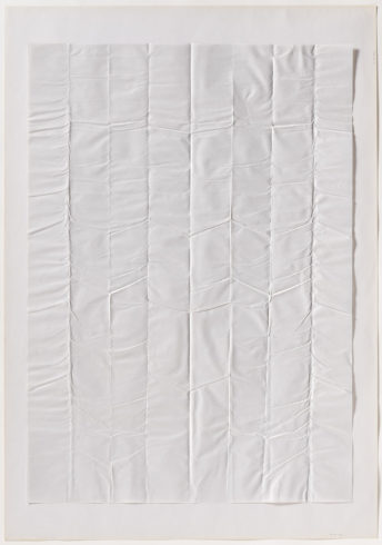 Verwenden wir Papier in der Regel bloß als hauchdünne Vorlage zum Beschreiben oder Bedrucken, so begreift Oskar Holweck das Material als plastischen Werkstoff. Wie vielseitig er dabei verfährt, geht aus seiner To-do-Liste über die Methoden der Papierbearbeitung hervor: „Biegen, Knicken, Knüllen, Falten, Knittern, Drücken, Pressen, Stauchen, Strecken, Ritzen, Durchstoßen, Reißen, Schlitzen, Schneiden, Kleben, Klopfen, Schlagen, Bohren, Sägen usw. bis Sengen, Erhitzen, Brennen.“ Die Möglichkeiten scheinen beinahe unendlich.
