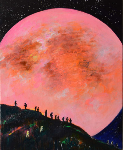 Auch die Weite der Bildräume, die schon die älteren Gemälde kennzeichnet, deutet auf den Abstand des Überschauens wie auch der Erinnerung. Der Wald wird zum Zauberwald: in der Rückbesinnung auf die eigene Kindheit, in der die Bäume ja besonders riesig wirkten. Die Topoi und Chiffren des Märchens klingen an und verweisen auf das Unterbewusstsein mit seinen Archetypen. Die Malerei selbst erweist sich als hinterfragendes Zelebrieren dieser Illusionen. Also, Tanja Vetter schildert die Komplexität des Lebens, in das jeder ausgesetzt ist, hinter den schönen, eingängigen Bildern. Zugleich bringt sie die unbegreiflichen Dimensionen des Kosmos und die Vielschichtigkeit der Natur zum Ausdruck. Immer wieder sind es die höchsten Höhen und die tiefsten Tiefen der Natur, denen sie sich zuwendet. Und sie verdeutlicht dadurch die Naturgesetze, etwa Ebbe und Flut und den jahreszeitlichen Rhythmus und die Gravitation der Erde. Dazu passt, dass die Kinder euphorisch, die Welt um sich herum vergessend, den Schwung der Schaukel ausnutzen und unbewusst gegen die Schwerkraft rebellieren. Dann wieder baumeln die Beine über den Felsvorsprüngen oder gleich im Wasser, in dem sie sich in Verzerrung spiegeln und damit sozusagen (wie übrigens auch beim kopfüber Schaukeln) die Welt umkehren. Die Schauplätze verbinden den urwüchsigen Wald mit dem Idyll der Windstille und zeigen mitunter gewaltige Schluchten. Die Schlucht hält auf Abstand oder sie umfängt und definiert einen Freiraum. Das gilt auch für die Schneisen und Lichtungen in den Wäldern. Ja, schon das Gewässer und das Stürzen der Wasserfälle beschreiben derartige Terrains. Das Verhältnis von Außen und Innen liegt schließlich auch bei Tanja Vetters Malereien einzelner (Holz-) Häuser inmitten der Natur vor. Hier wirken sie in ihrer präzisen Robustheit unzugänglich und verschlossen. Menschen sind keine zu sehen. Ein Zwielicht, das durch das Blattwerk bricht, lässt das Gebäude erst recht verwunschen wirken …
