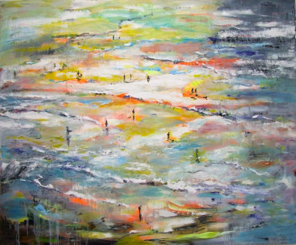 Es ist ganz erstaunlich, was Tanja Vetter mit den Möglichkeiten der Malerei und mit den Wirkweisen der Farben auf die Leinwand bringt. Das gilt bereits für ihre Darstellung von Wasser. Ein Bild wie Water Fun (2013) ist phänomenal in seinen Tönen, die die reine Transparenz und die Nicht-Farbigkeit nuancieren. Phänomenal ist auch die Schilderung von fließendem Wasser mittels der Farbmaterie. Großartig sind darüber hinaus die Komposition des Bildraumes und nicht zuletzt die facettenreiche Schilderung, bei der jede Figur Individualität erhält.