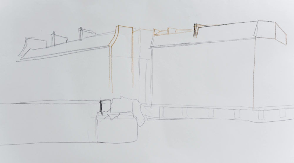 Die langen Seitenkanten der Kreidetäfelchen, die – je nach Bruch – auch scharfkantig sind, halten langen Linien stand und eignen sich für großzügige Aufrisse und Schraffuren mit Verve.