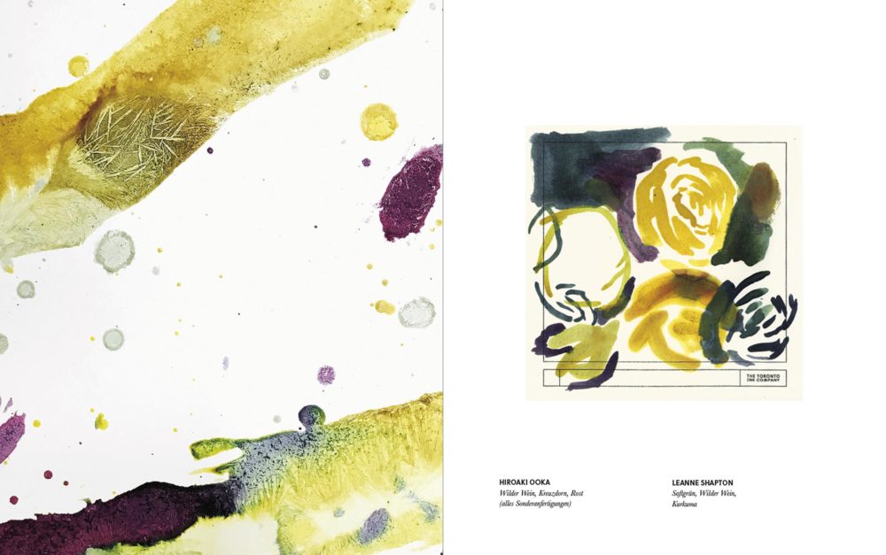 Ein eigenes Kapitel ist der „Zusammenarbeit mit Künstlern“ gewidmet. Logans Tinten haben weltweit eine große Anhängerschaft. Seine Fans, zu denen auch namhafte Künstler und Schriftsteller gehören, schicken ihm für seine Experimente z.B. Flechten, die auf Steinen wachsen, gebrannte Pfirsichkerne oder geschwärzte Japanische Teemuscheln zu. Dave Eggers und Margaret Atwood tragen Illustrationen zu Logans Buch bei, und in einem langen, sehr persönlichen Interview mit dem Schriftsteller Michael Ondaatje erfährt man am Ende des Bandes mehr über Jason Logan und seine Liebe zur Farbe.