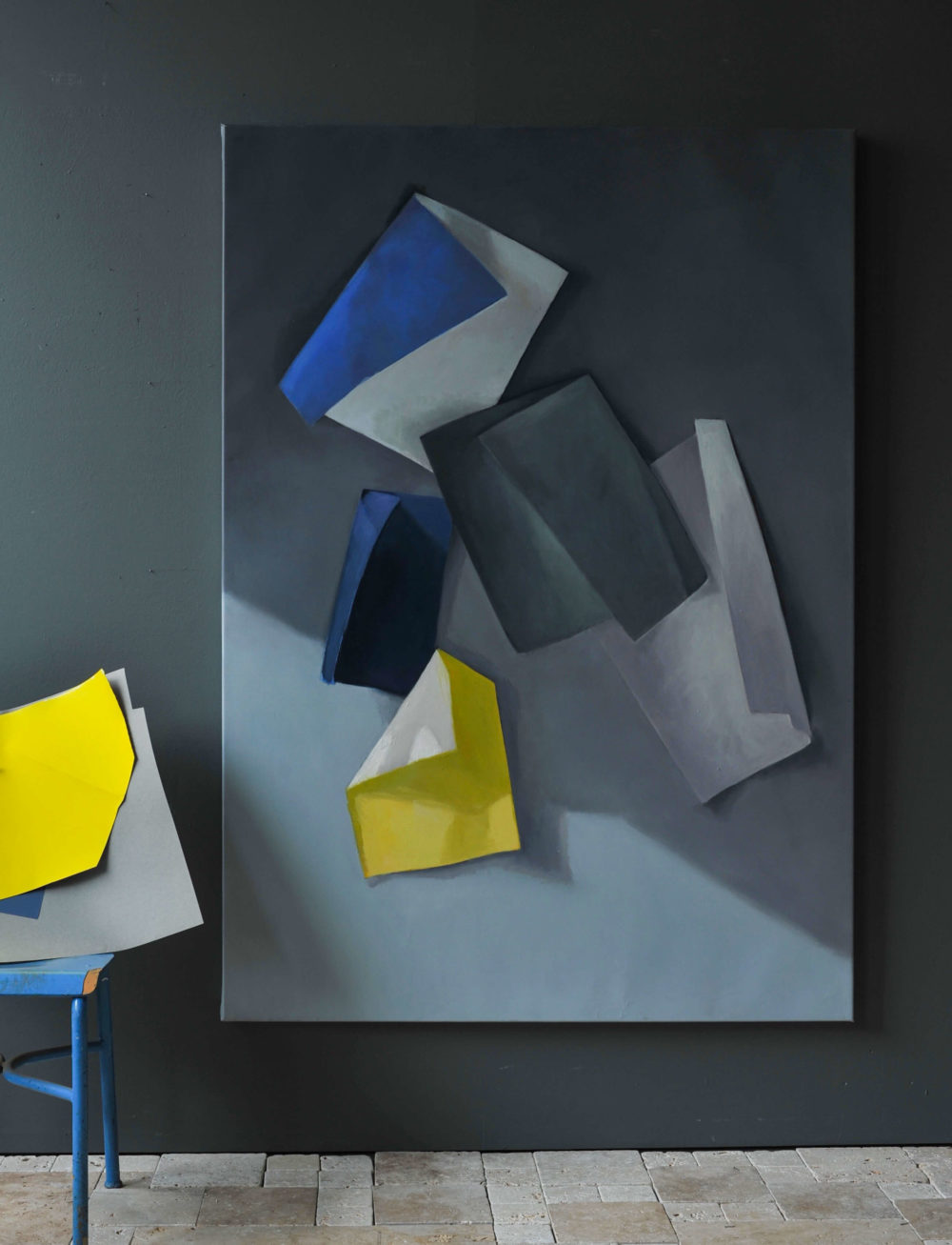Geknickt, mit Eselsohren und gefaltet auf den Untergrund gepinnt, standen in diesem modernen Beispiel der Illusionsmalerei aus der Reihe „Ten ways to create a picture“ verschiedene Papiere Modell: Ausgeführt in Öl auf dem feinen, grundierten Reinleinengewebe „Madrid“ werden durchgefärbte Bögen ebenso wie einseitig farbige Papiere mit weißer Rückseite zum Hauptdarsteller des großen Formats.