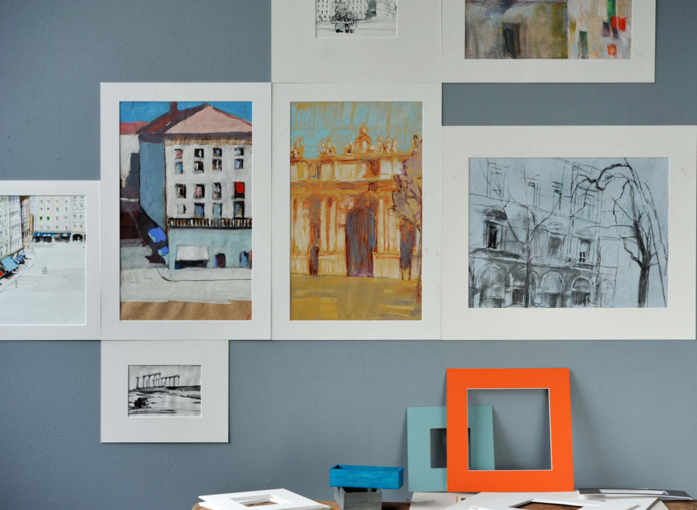 Und last but not least lohnt es sich, farbigen Fertigpassepartouts einen zweiten Blick zu widmen, denn sie können weit mehr als nur Bestandteil einer Rahmung sein: mit ablösbaren Klebepads an der Wand befestigt, werden sie selbst dazu. Und, ganz nebenbei: Natürlich eignen sich viele dieser Ideen auch für heimische Zwecke. Für die Küche mit ihrem Sammelsurium an Rezeptzetteln. Für das Homeoffice. Und insbesondere für Kinderzeichnungen, für deren mit Liebe überreichte Anzahl die heimischen Wände meist nicht auszureichen scheinen …