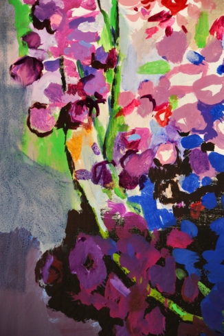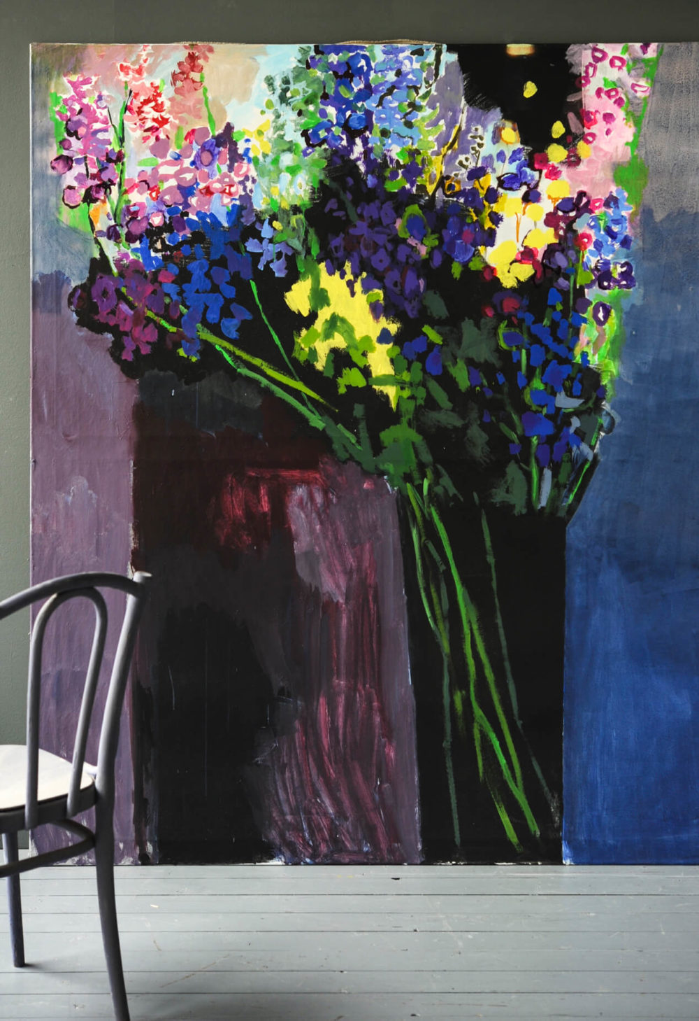 Heute wird Blumenstillleben eine dekorative, eher liebliche Anmutung mit genrehaftem Charakter zugesprochen – was dem Sujet jedoch nicht immer und unbedingt gerecht wird: Dies zeigt der vielfarbige Rittersporn-Strauß nicht zuletzt sowohl durch seine monumentale Größe als auch durch seine kompositorische Strenge.