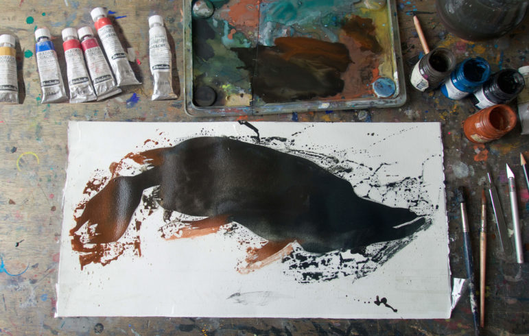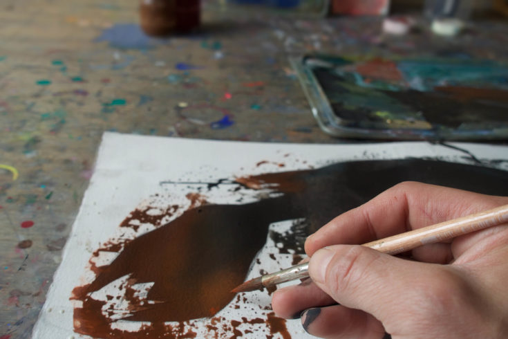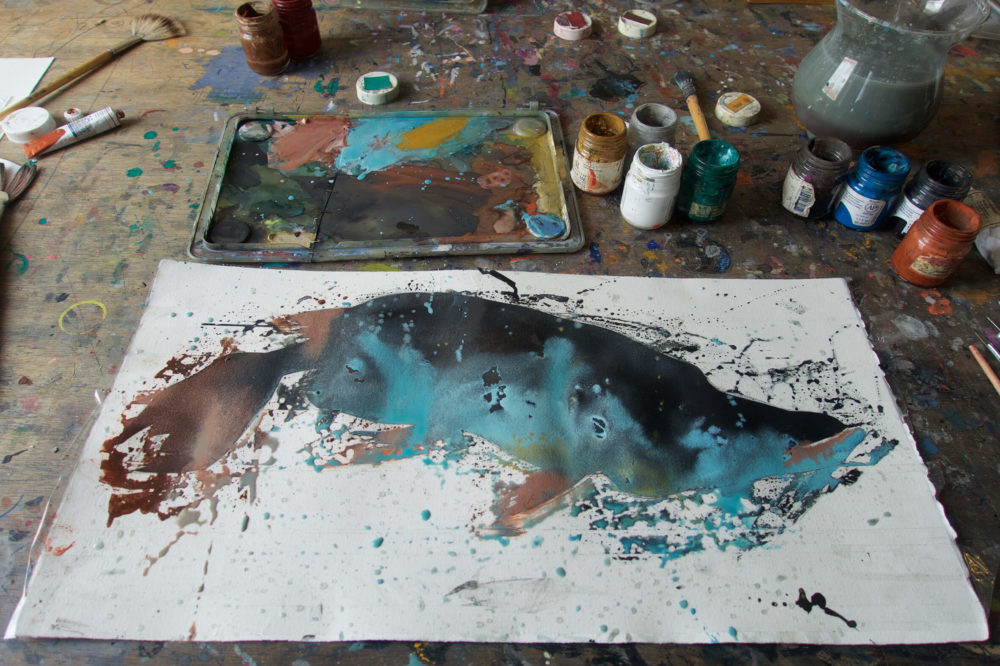 Aljoscha Blau malt am liebsten mit den Gouache-Farben von Schmincke oder Talens. Ganz gleich, ob er an seinen Illustrationen oder an großformatigen Bildern arbeitet.