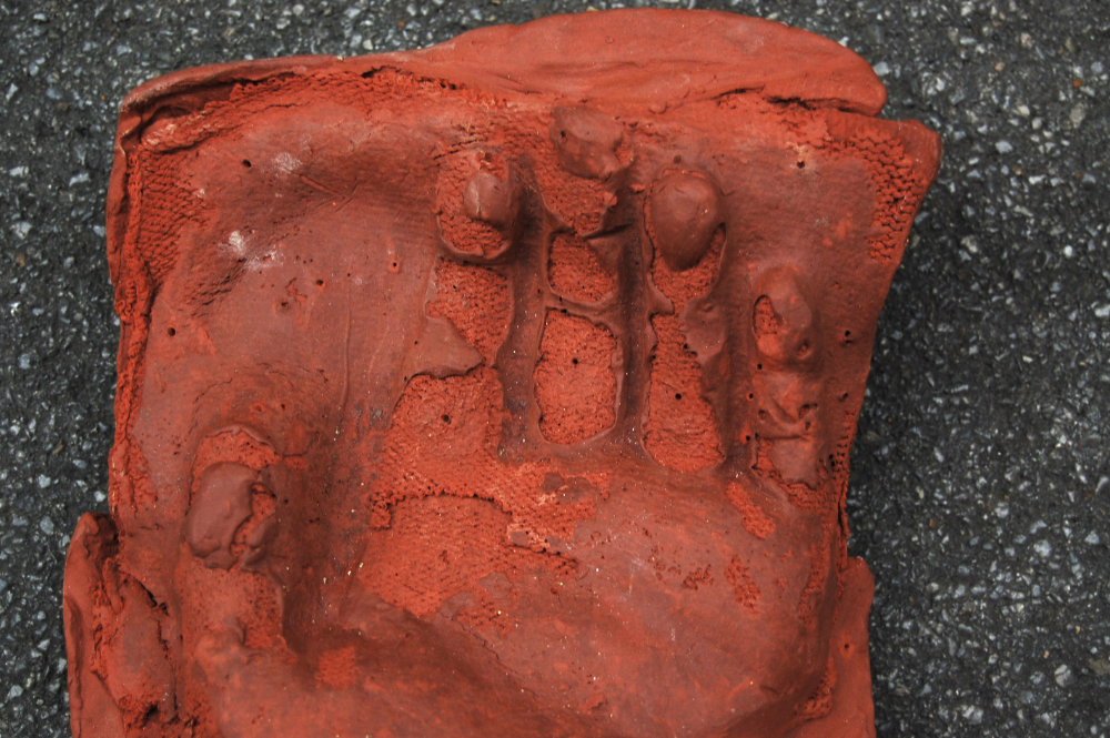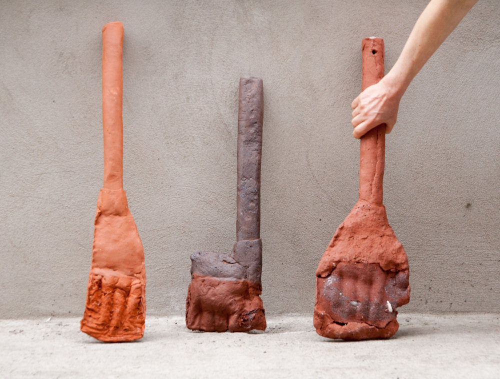 Ich verwende eine feine Aufbaumasse, die während des Brennens eine dunkle, rot-braune Farbe annimmt, die mich an Blut denken lässt. Während des Brennens erzeugen die brennbaren Materialien im Ton unvorhersehbare Farbschattierungen und filigrane Texturen. Dadurch wird auch der gebrannte Ton für mich eine Materie des Leibes. Im Vergleich mit anderen traditionellen Medien, die für die Darstellung der menschlichen Form in der Kunst benutzt werden, empfinde ich Ton als ein „emotionales“ Medium. Seine Neigung zu fragmentieren veranschaulicht unsere physische und psychische Zerbrechlichkeit.