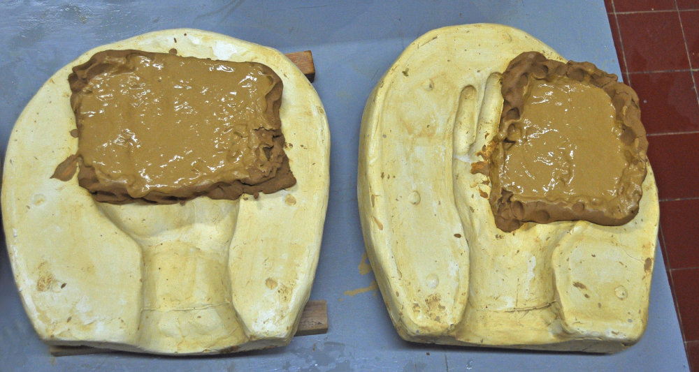 Im ungebrannten Zustand erscheint der Ton in flüssiger, weicher oder harter Beschaffenheit, welche mich an die Stofflichkeit des menschlichen Körpers erinnert. Meine Arbeiten werden in Gipsformen gegossen, die mit brennbaren Materialien ausgelegt sind. Oft füge ich noch handgebaute Elemente hinzu. Dabei finde ich es spannend, dass jede Phase des Schaffensprozesses ihre Spuren hinterlässt und eine „Reaktion“ im Ton erzeugt. Die unterschiedlichen Interventionen schaffen jeweils besondere Formen des Ausdrucks, und so wird das Medium für mich lebendig. Es entsteht ein Dialog zwischen mir und dem Ton, wodurch sich das Konzept meiner Arbeiten schrittweise entwickelt.