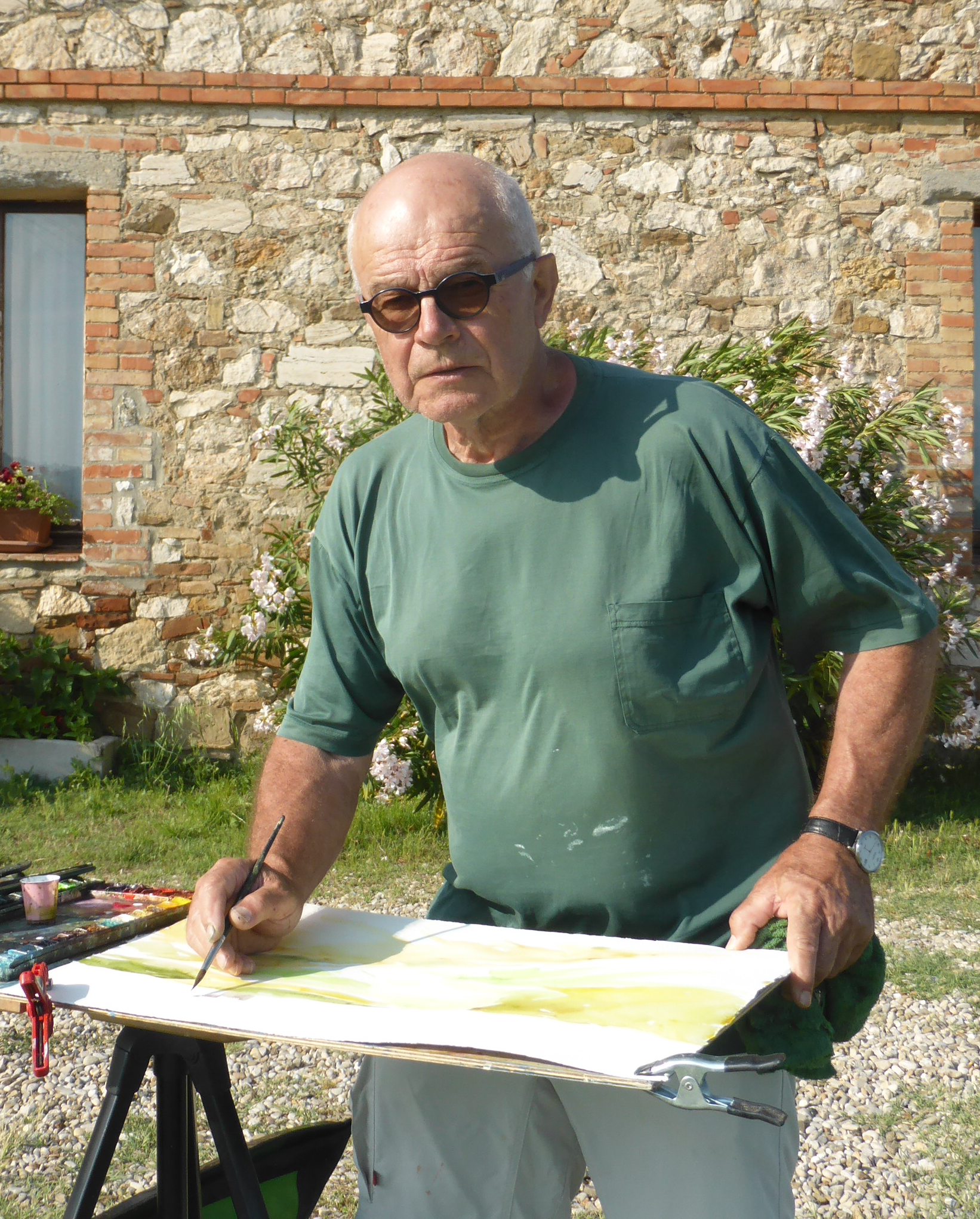 Ekkehardt Hofmann malt mit einem speziellen Rotmarderhaarpinsel