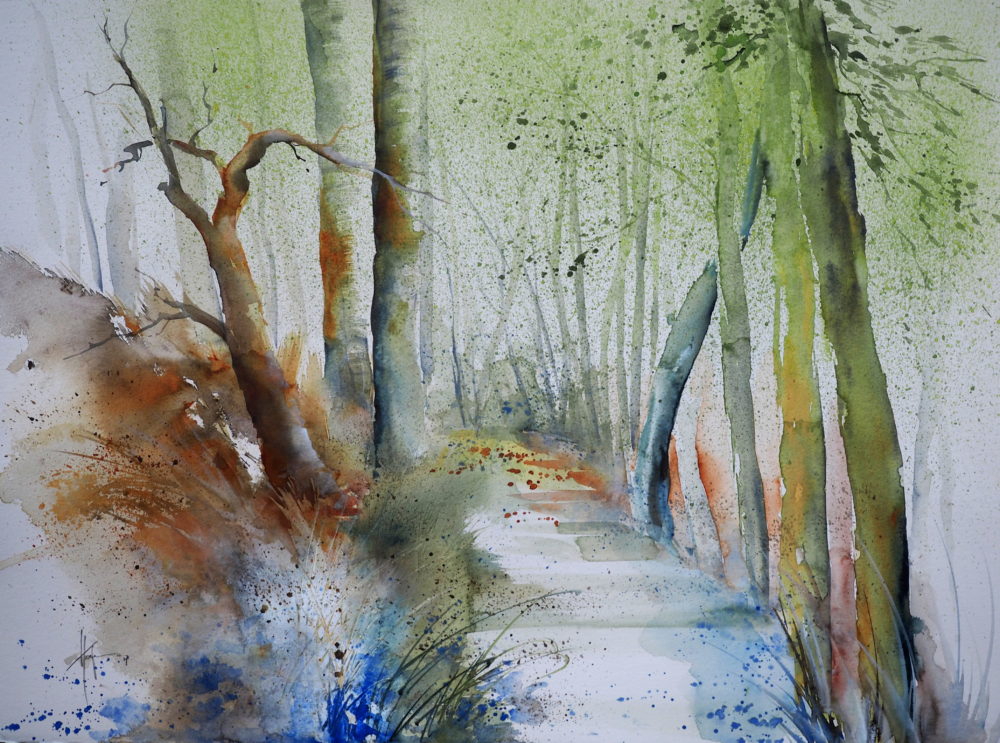 Meine Art, Aquarelle zu malen, pendelt zwischen flächigen und linearen Bildelementen hin und her. Die Flächen, die eine Ruhe bei der Gestaltung darstellen, werden durch Linien konkretisiert, begrenzt und hervorgehoben.