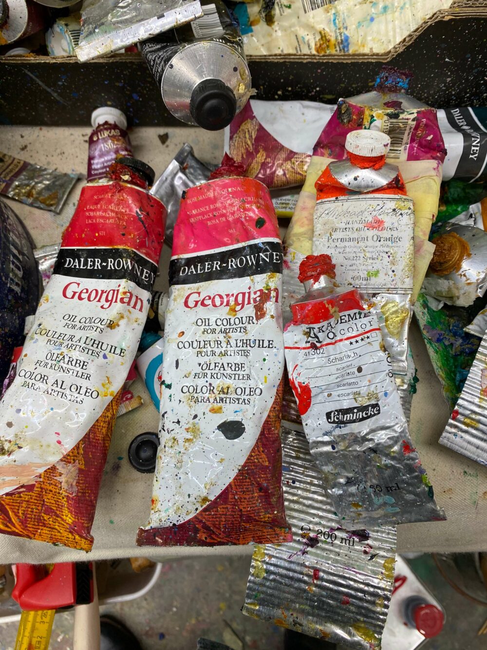 Ein Bild zu malen beginnt im Kopf, im Körper, in den Skizzen, den Notizen, auf Reisen. Dann im Atelier. Dort male ich mit Öl auf Leinwand. Wenn es spontan gehen muss, bevorzuge ich „Henry“-Fertigrahmen, bei den größeren Bildern, die ich selbst aufspanne, ist das Arles-Maltuch am geeignetsten. Das Tuch sollte eine mittlere Körnung und mindestens 280 g/m2 haben, da ich oft lange und in vielen Schichten übereinander arbeite und so die Festigkeit brauche.