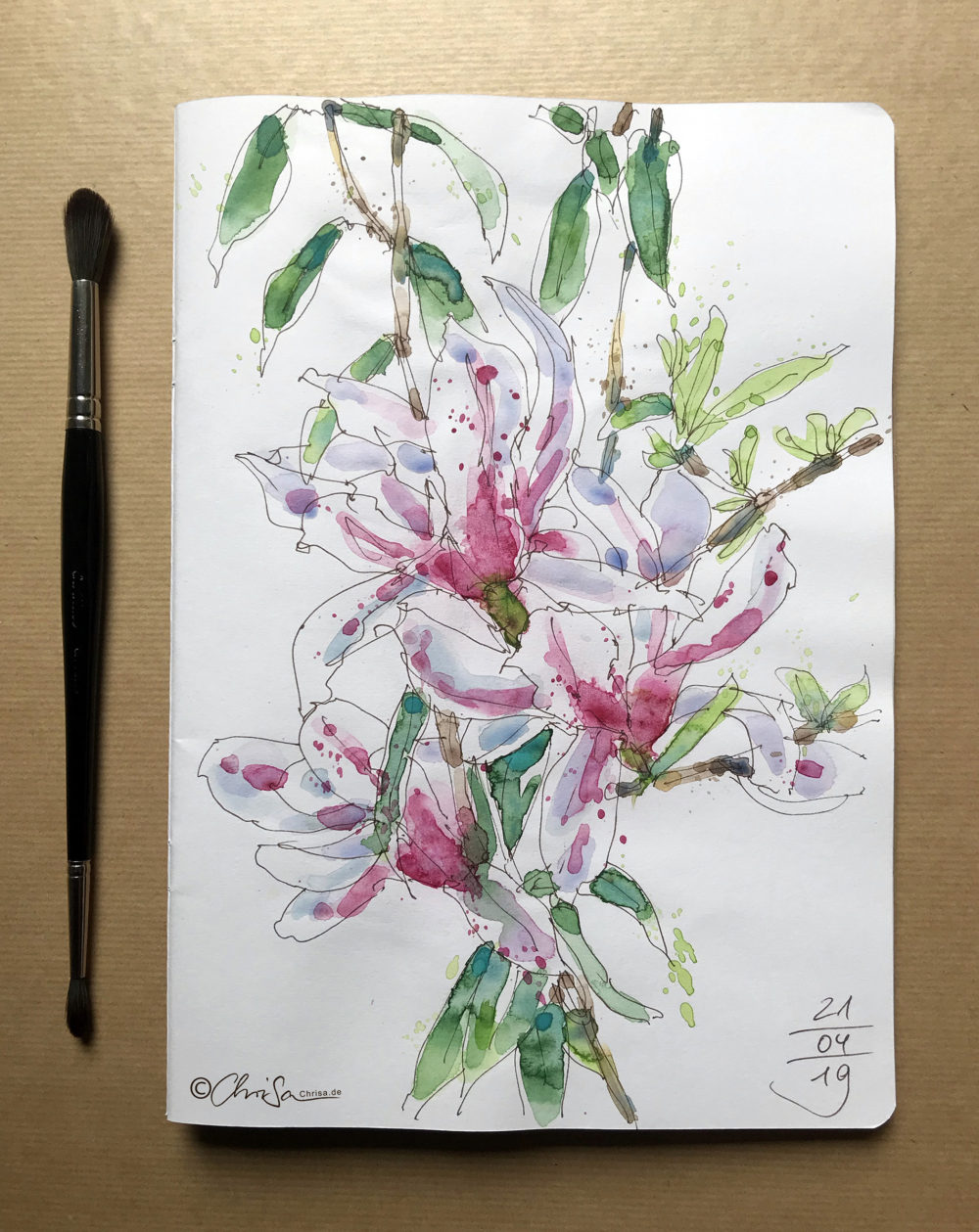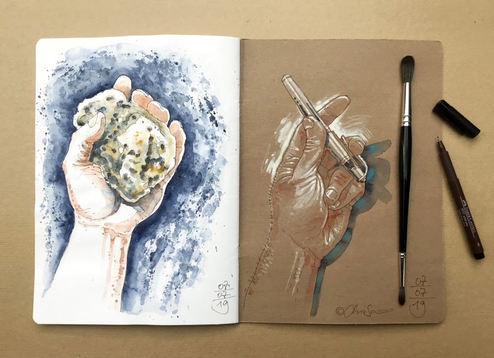 Der Einband der Sketchbooks in den Formaten A6 bis A3 bietet vier naturbraune Seiten zum Skizzieren und zum Höhen mit Weiß. Auf den folgenden 32 säurefreien, rein weißen, 150 g/qm schweren Innenseiten lässt sich dann nicht „nur“ zeichnen, sondern auch aquarellieren.