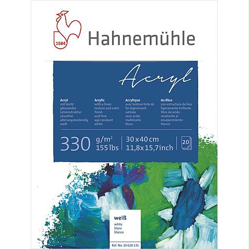 Genau zum richtigen Zeitpunkt flatterte damals die gute Fee in Form einer Anfrage von Hahnemühle in mein Atelier. Man suchte ausgerechnet in mir nach dem Künstler, der das Papier Acryl 330 einem Produkttest unterziehen sollte. Gesagt, getan: Nach nur wenigen Stunden war ich ein verzauberter Fan des Papiers! Dies war genau das, was ich so lange gesucht hatte: Das weiße Papier hat eine leicht glänzende Oberfläche mit Spezialbeschichtung. Diese sorgt dafür, dass die Farbe nicht sofort trocknet. Es ist anders als Leinwand. Anders als Malplatten. Die Leinenstruktur, welche mich anfangs störte, erweist sich als hilfreich bei der Farbaufnahme und wird durch die Acrylschichten kaum noch wahrgenommen. Inzwischen liebe ich es, darauf Bilderserien in extremen Hoch- und Querformaten zu malen. Hierzu unterteile ich den Papierbogen einfach mit Kreppband ins gewünschte Maß. Das Klebeband lässt sich auch nach Tagen noch mühelos und ohne Rückstände ablösen. In meinem Atelier hat sich das Hahnemühle Acrylmalpapier 330 sofort fest als vollwertiges Medium etabliert. Ich nutze es für deckende und pastose Malerei, es eignet sich jedoch ebenso hervorragend für eine aquarellige Malweise, ohne sich zu wellen. Manchmal muss man eben zu seinem Glück erst gezwungen werden.