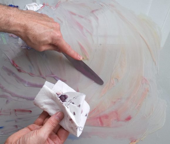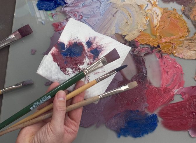 Das Reinigen der Pinsel und Palette am Ende der Malsitzung: