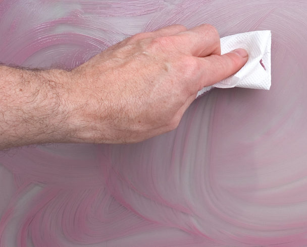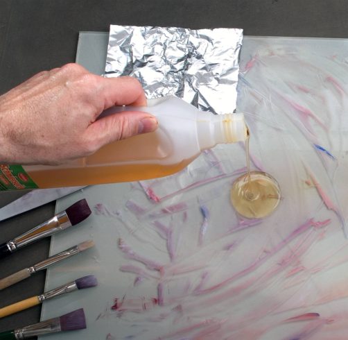 Die beschrieben Technik eignet sich für alle Ölfarben, die mit Pflanzenölen (Leinöl, Sonnenblumenöl, Mohnöl, Safloröl) hergestellt sind. Werden Harzölfarben oder Malmittel mit hohen Natur- oder Kunstharzanteilen benutzt, wird es schwerer, allein mit Seife zu reinigen. Hier müssen Sie unter Umständen nach dem Vorreinigen im Lappen etwas Terpentin benutzen. Danach können Sie mit Seife weiterarbeiten.