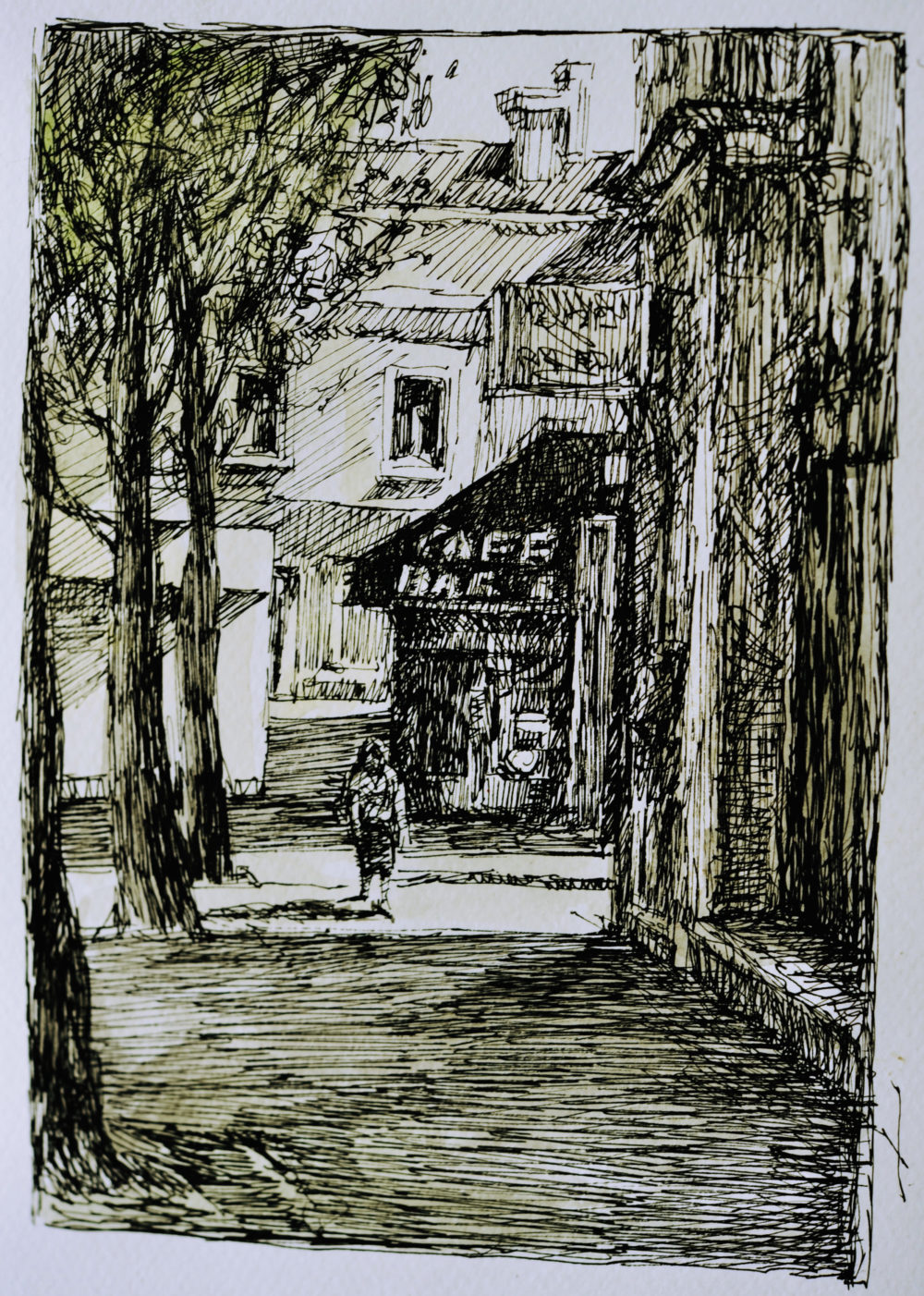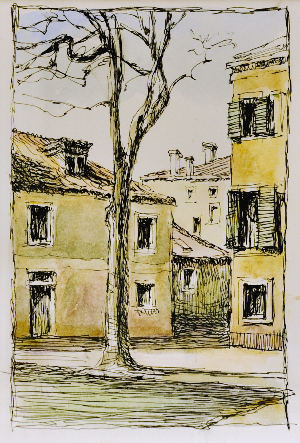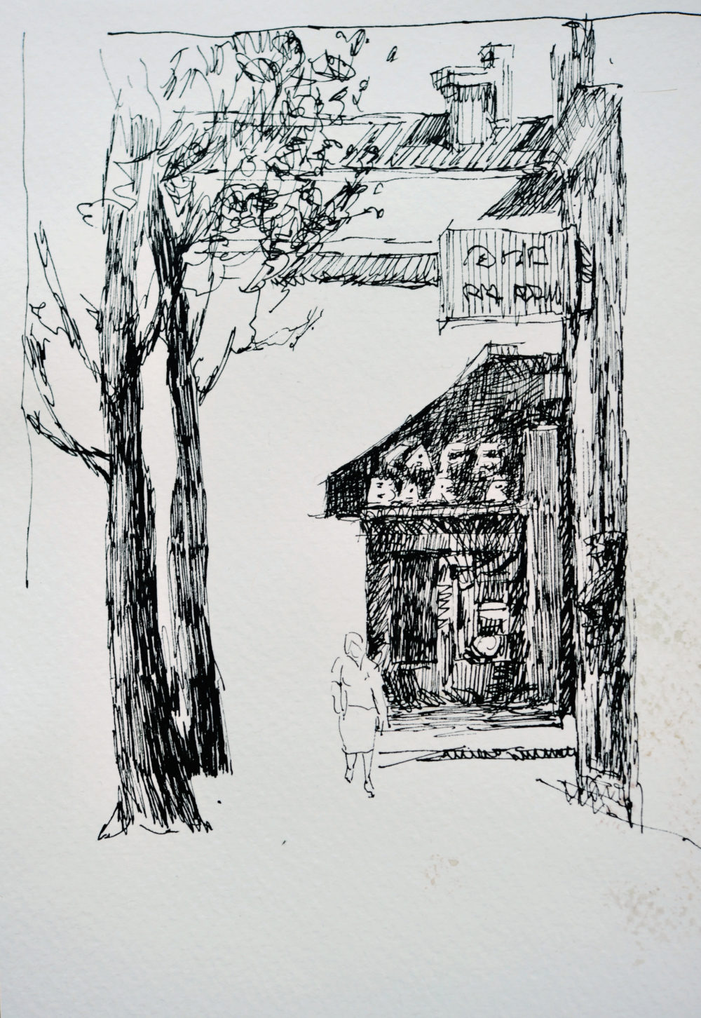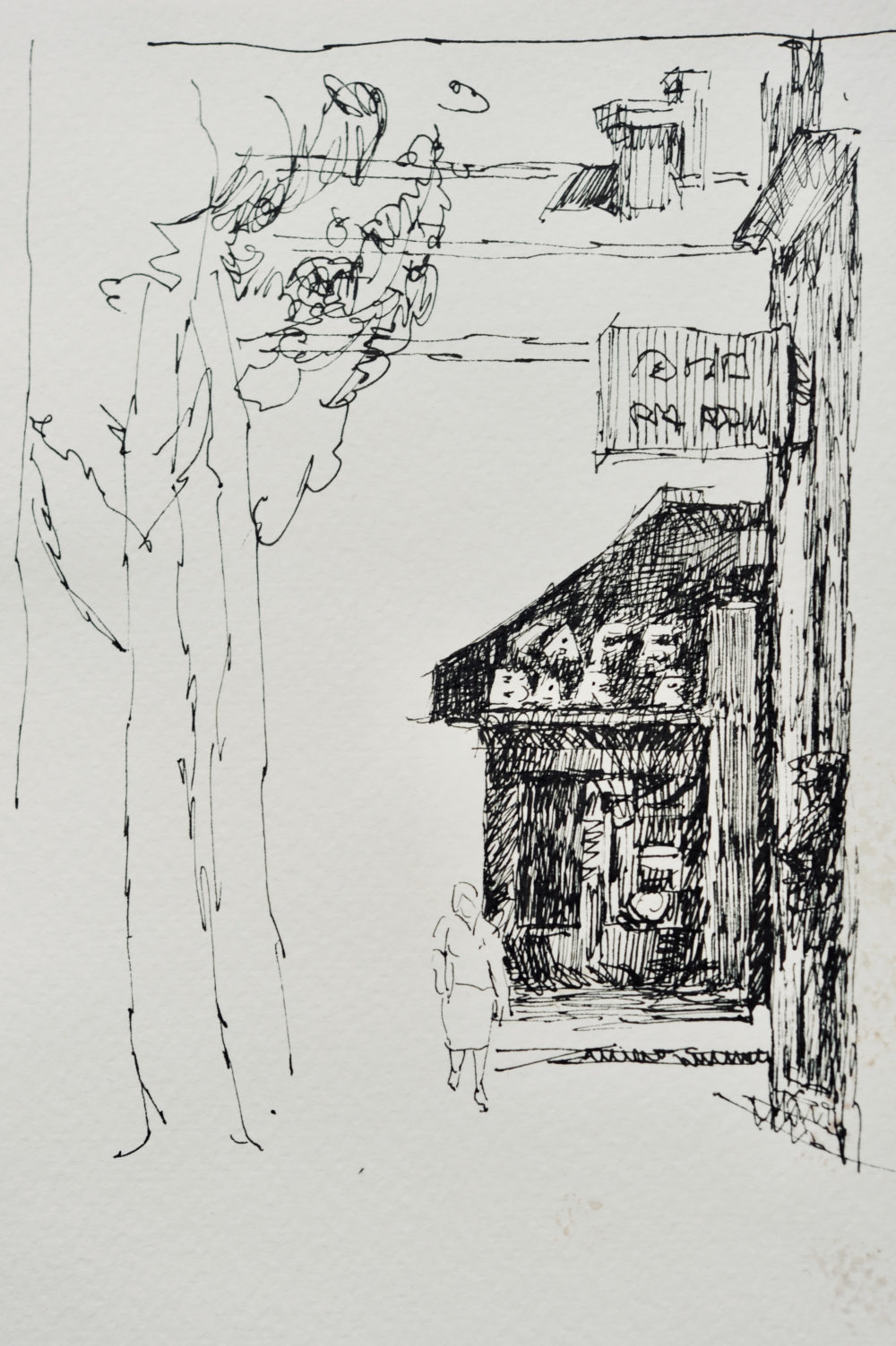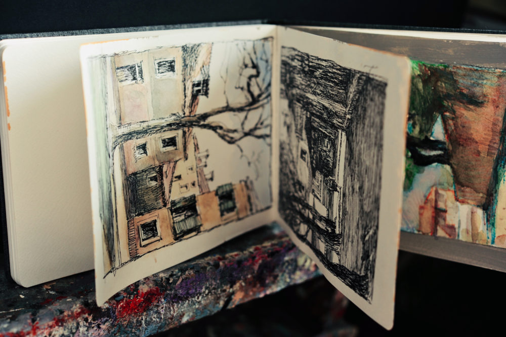 Das Zeichenbuch hütet verschiedenste Szenerien – hier bietet sich eine reduzierte Zeichnung für eine deutlichere Aquarell-Lavierung an.